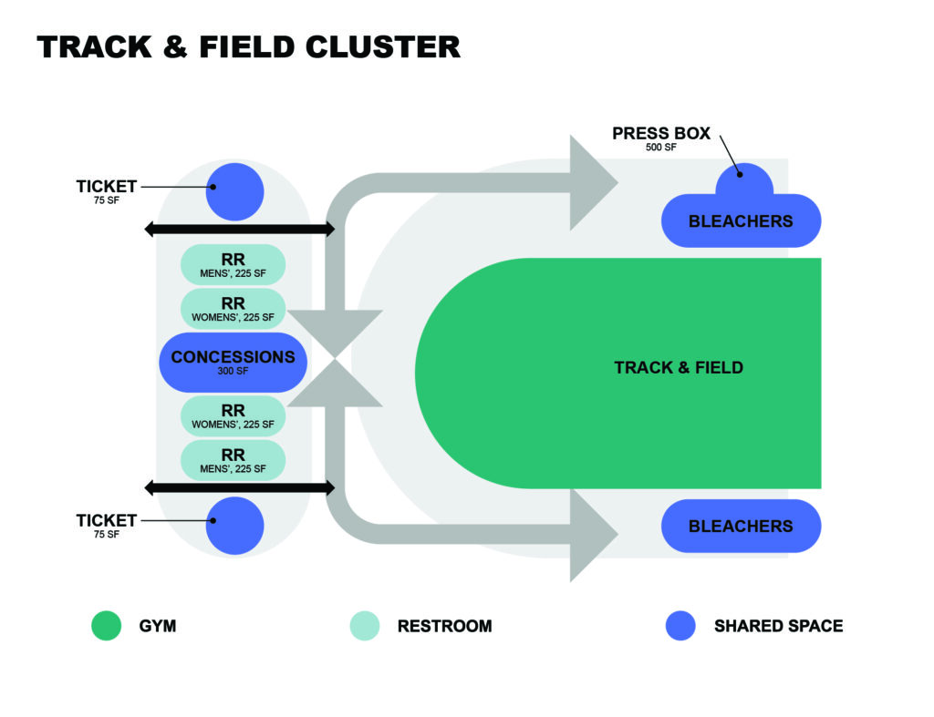 Design Objectives: Provide modern, inclusive, and equitable facilities for diverse physical activities; support social-emotional wellness, physical fitness, and school pride. Incorporate spaces like dedicated weight rooms, wrestling areas, and multipurpose gym zones. Include synthetic turf where appropriate for safety and durability. Ensure accessibility and universal design across indoor and outdoor athletic environments, including viewing areas.