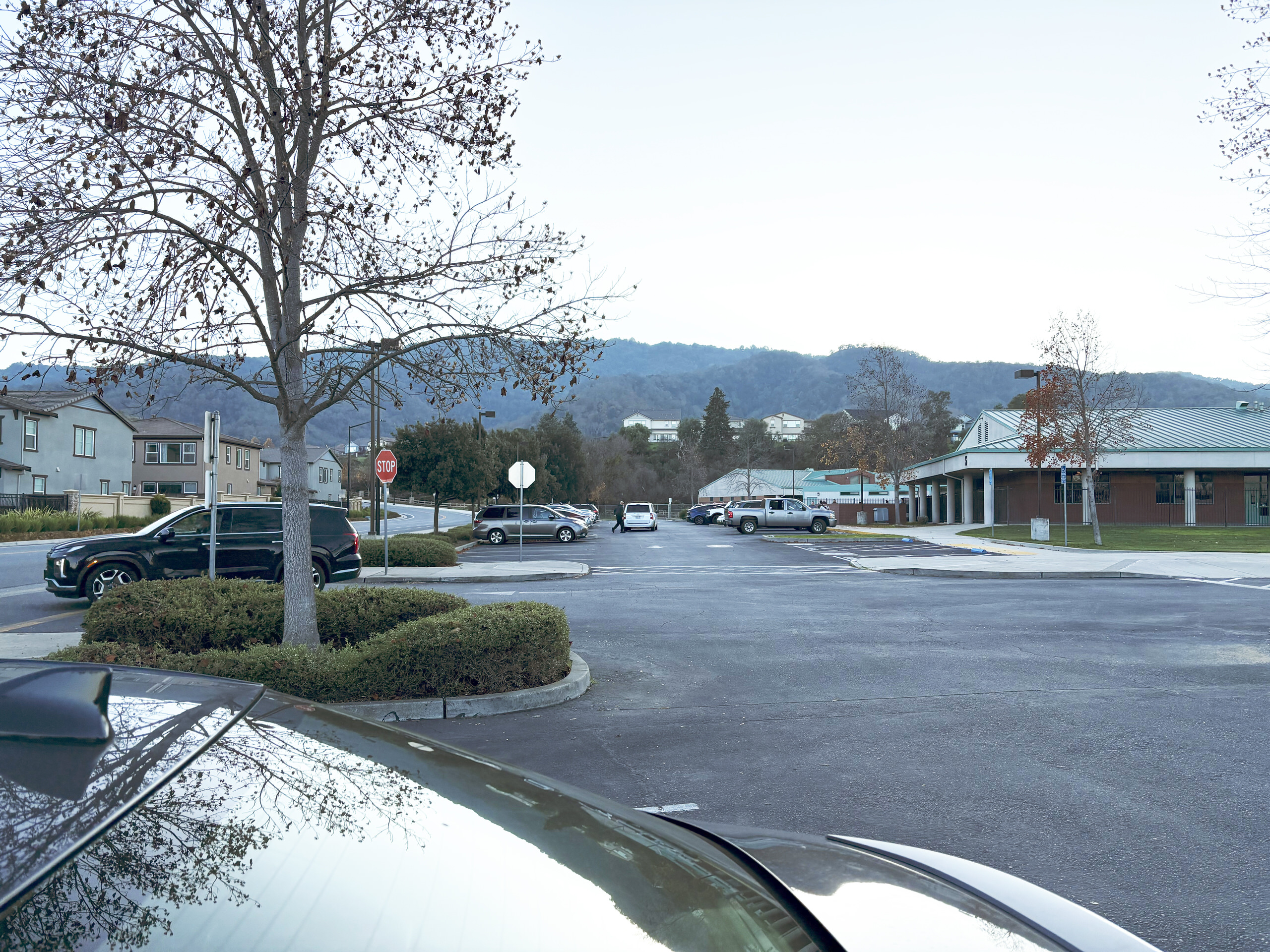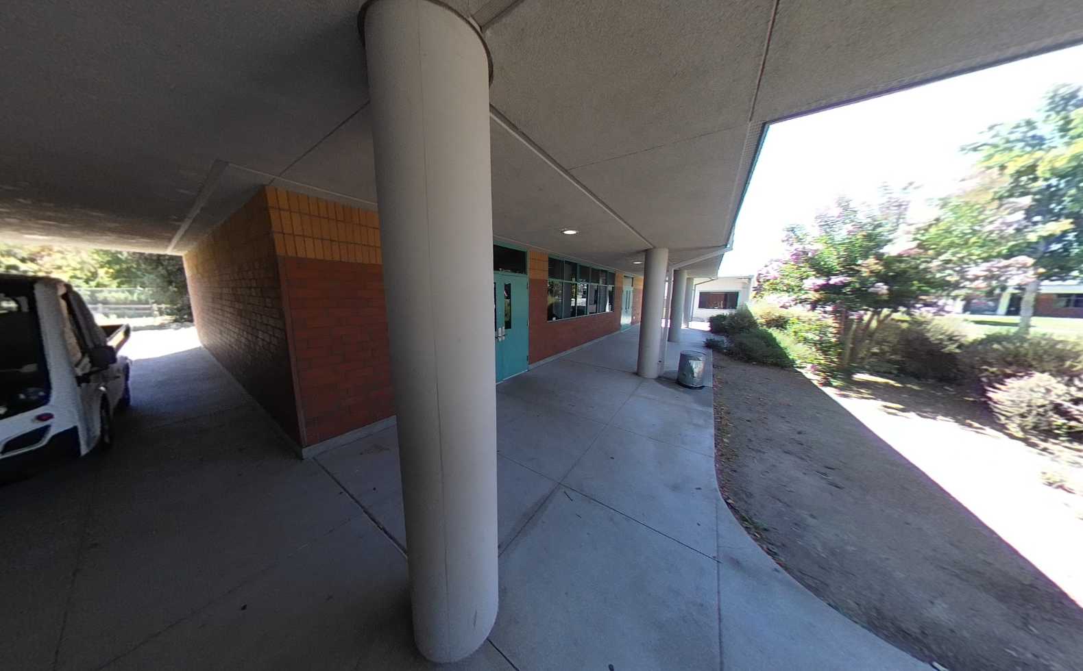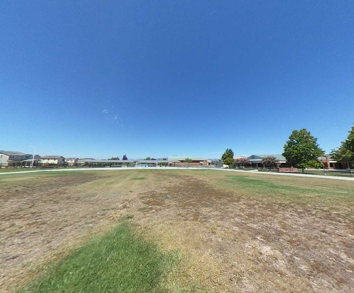 Temporary aluminum bleachers are used for events but are unstable and require replacement. Despite the site’s landscape features, large portions of outdoor pathways and gathering areas lack adequate shade. Perimeter parking along Grenache Way and Syrah Drive sufficiently supports school operations.