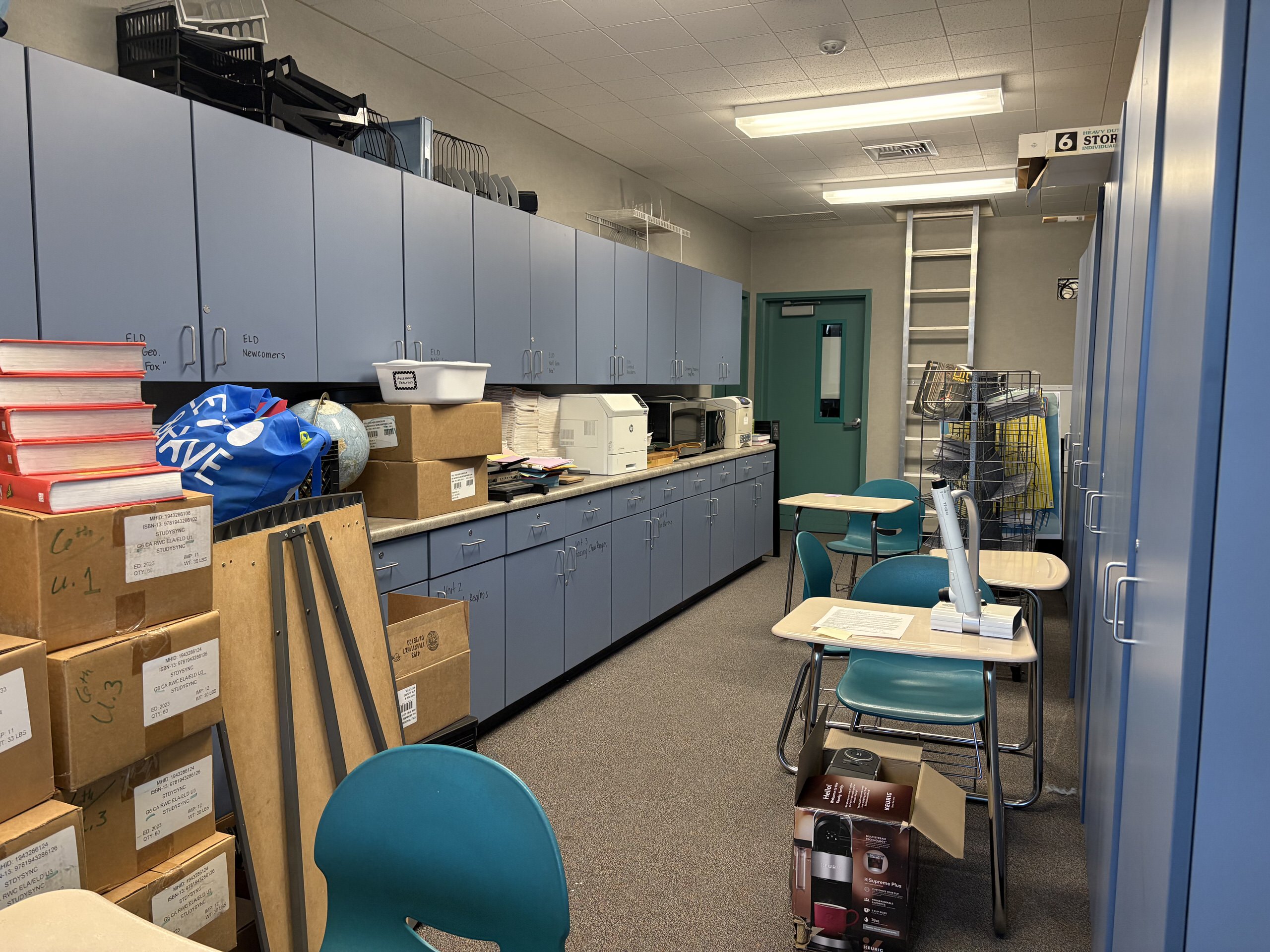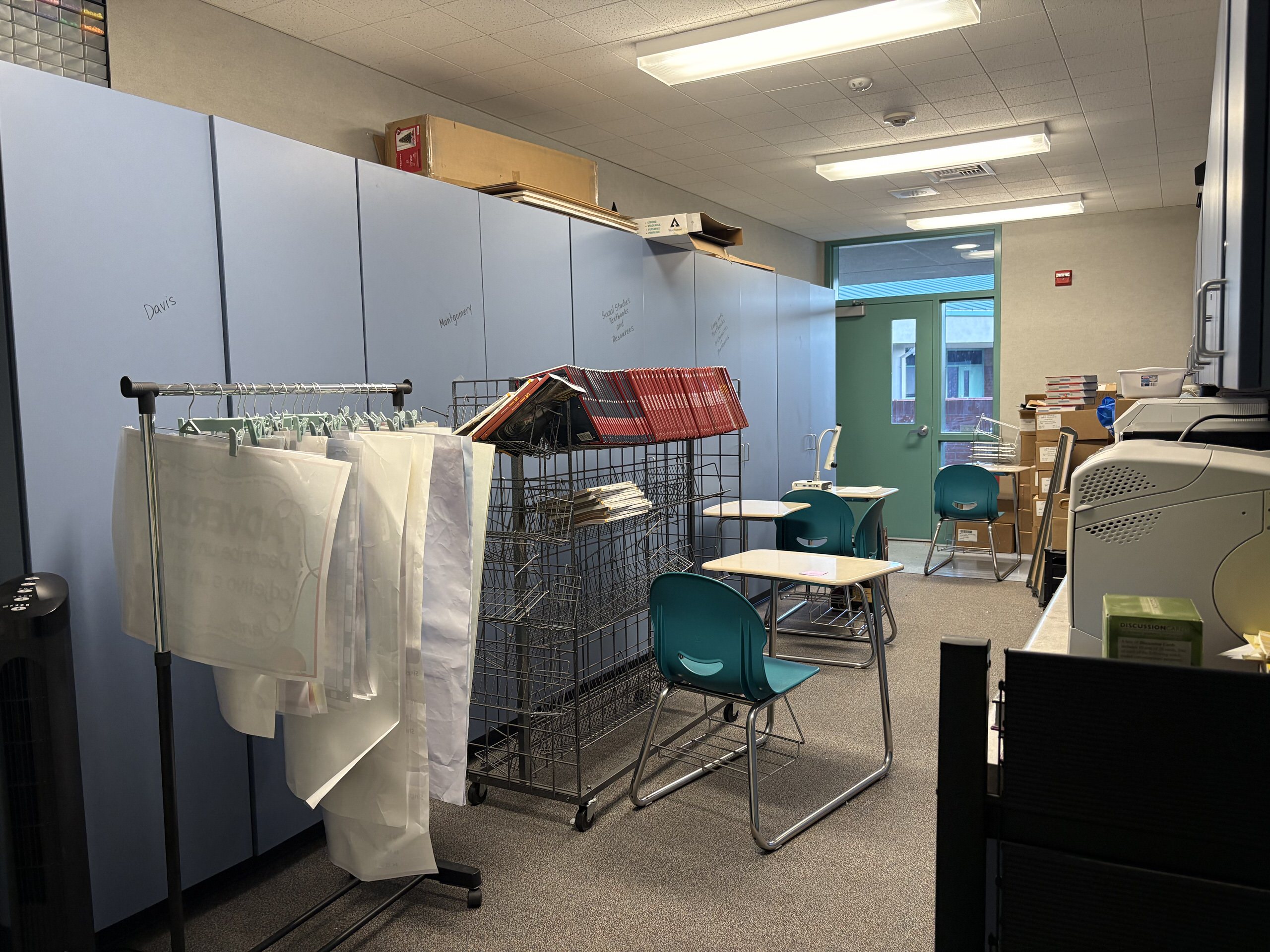 Interiors include a combination of carpet and vinyl flooring, tackable wall panels, casework storage, and heavy furnishings that, while functional, are dated. Portable classrooms contain minimal casework and movable desks, reflecting limited flexibility. The music building offers high ceilings and perimeter casework, with window covering at the front-facing windows. The adjacent multimedia lab is significantly underutilized and currently functions as storage. Overall, classroom facilities are in fair condition but would benefit from been updated.