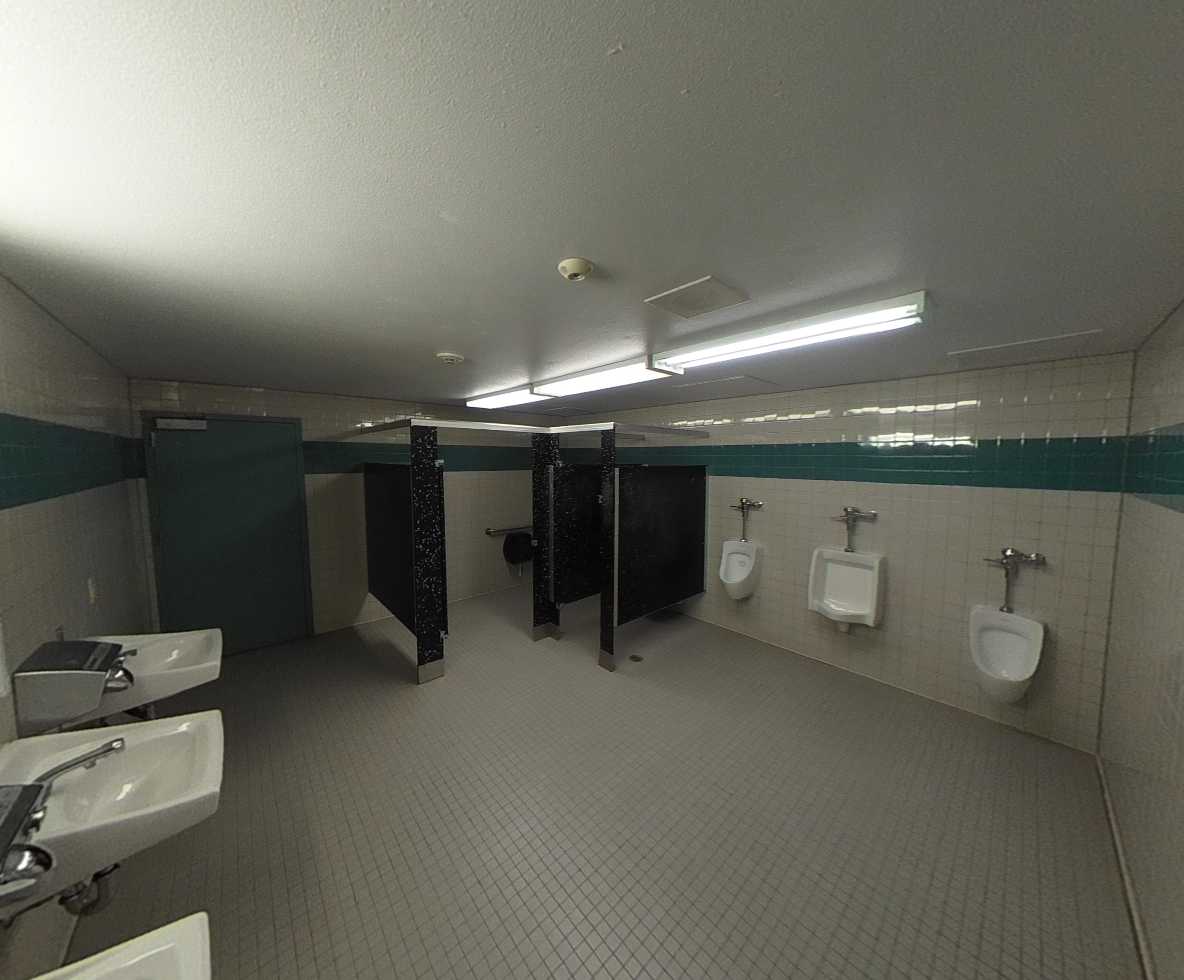 The gymnasium sits north of the multi-purpose building and includes high ceilings, clerestory windows, retractable bleachers, and indoor courts. The main entrance opens to an interior reception area with large windows and direct restroom access. The west facing side of the gym experience issues with glare which reduce its usability. This could be addressed by adding window covering or tinting. Overall, the gym is well-maintained and in good condition.