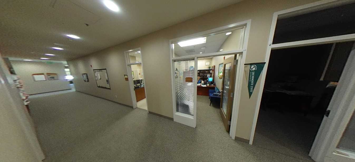 While operational, the administrative spaces show signs of aging. Flooring, paint, and cabinetry are worn, and lighting is outdated compared to newer campus facilities. Storage is limited, and signage and wayfinding are faded or inconsistent. Improvements are needed to enhance efficiency, visibility, and overall user experience.