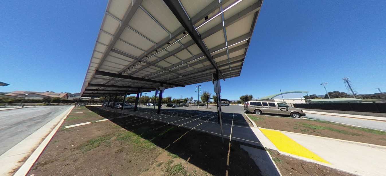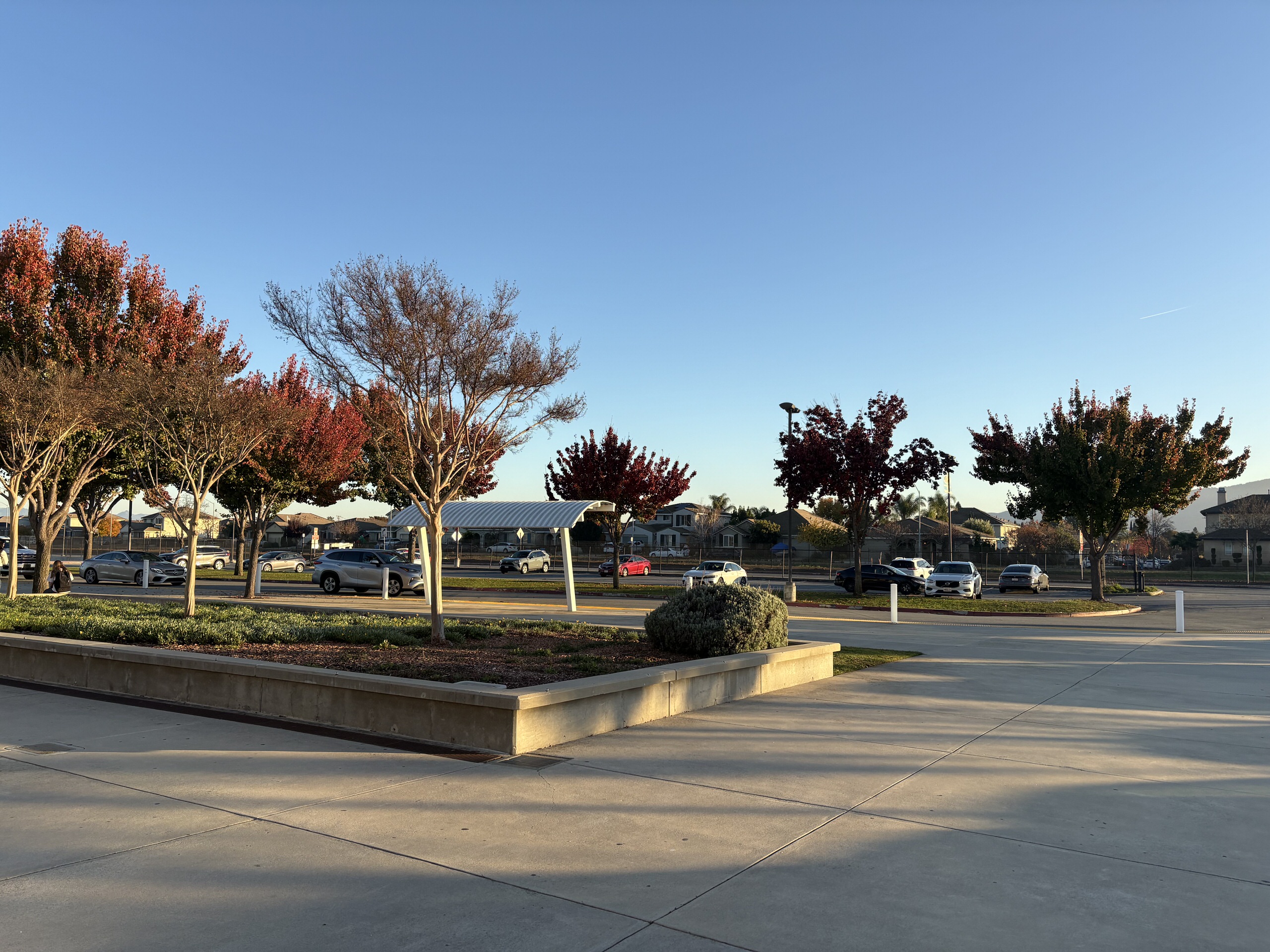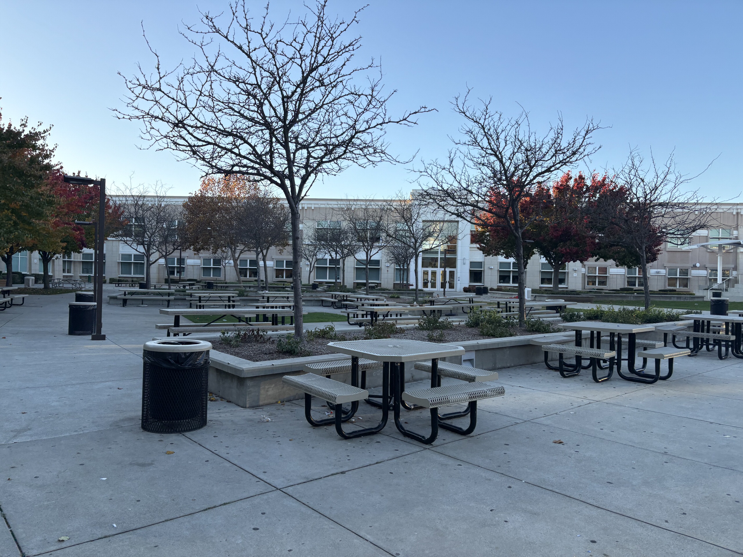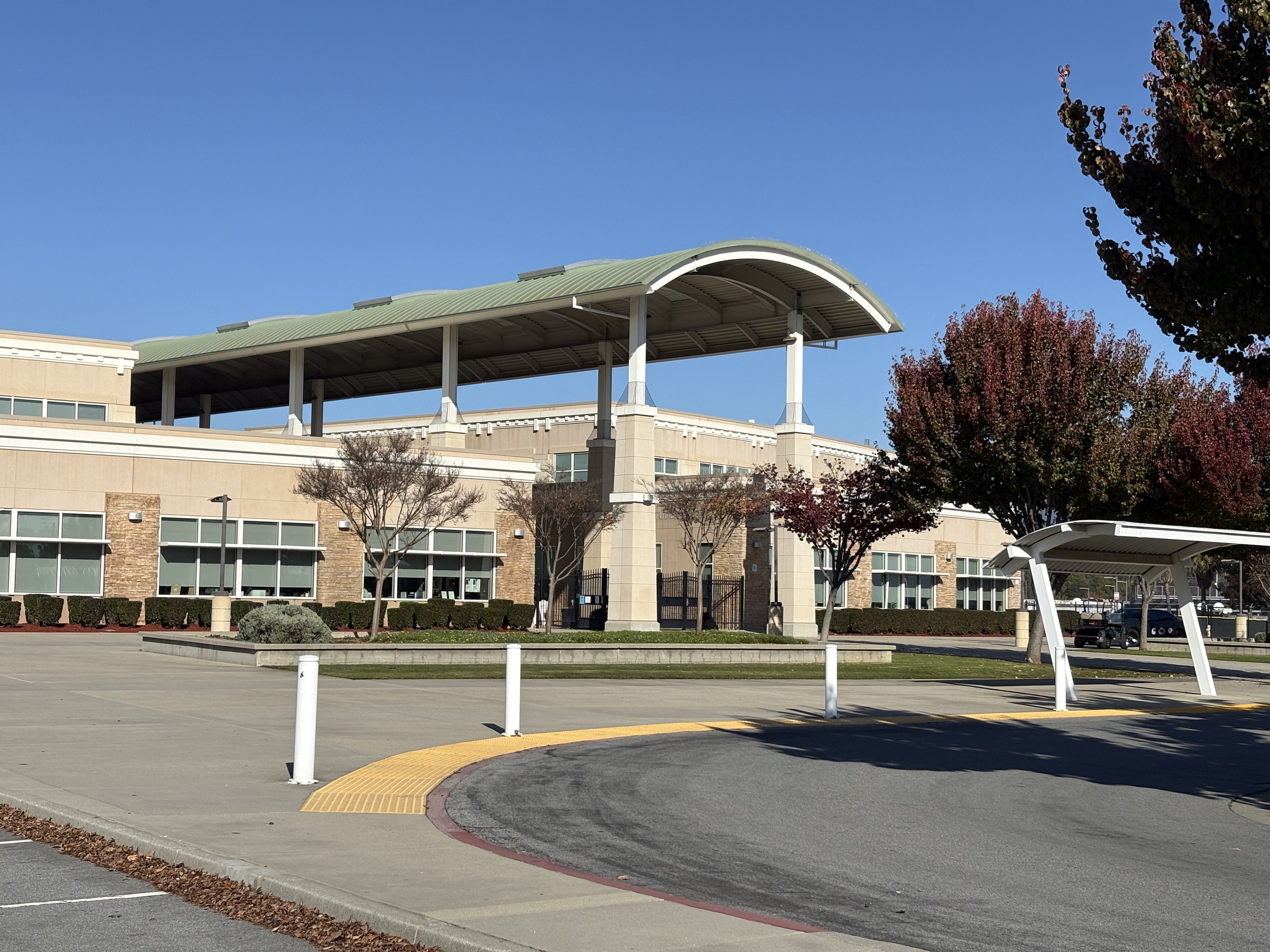 Christopher High School is the district’s most recently built high school campus, completed in 2015. It is organized around a central courtyard that serves as the primary circulation path and student gathering area. Large-scale canopy systems rise above the building heights, providing shade and emphasizing horizontal lines. These structures contribute to the campus’s contemporary character while supporting outdoor circulation and gathering. Many interior spaces, such as the cafeteria and library, have clerestory windows and large openings to maximize natural light. The campus has large parking areas at both the main and rear entries. Overall, buildings are well-maintained and cohesive in design; however, site paving, striping, and landscaping exhibit wear, and accessibility between parking lots and building entries is inconsistent. The campus remains attractive and functional but would benefit from targeted improvements to paving, wayfinding, accessibility, finishes, and more outdoor shading.