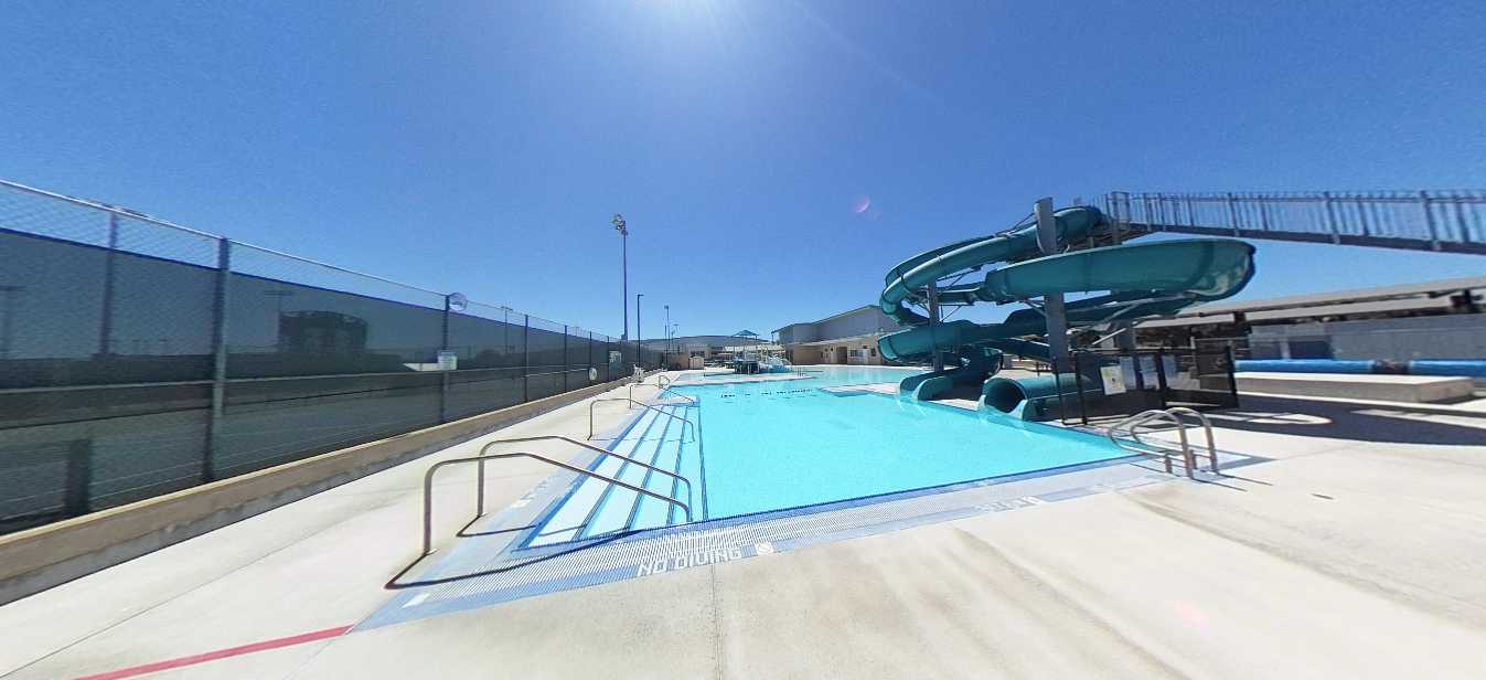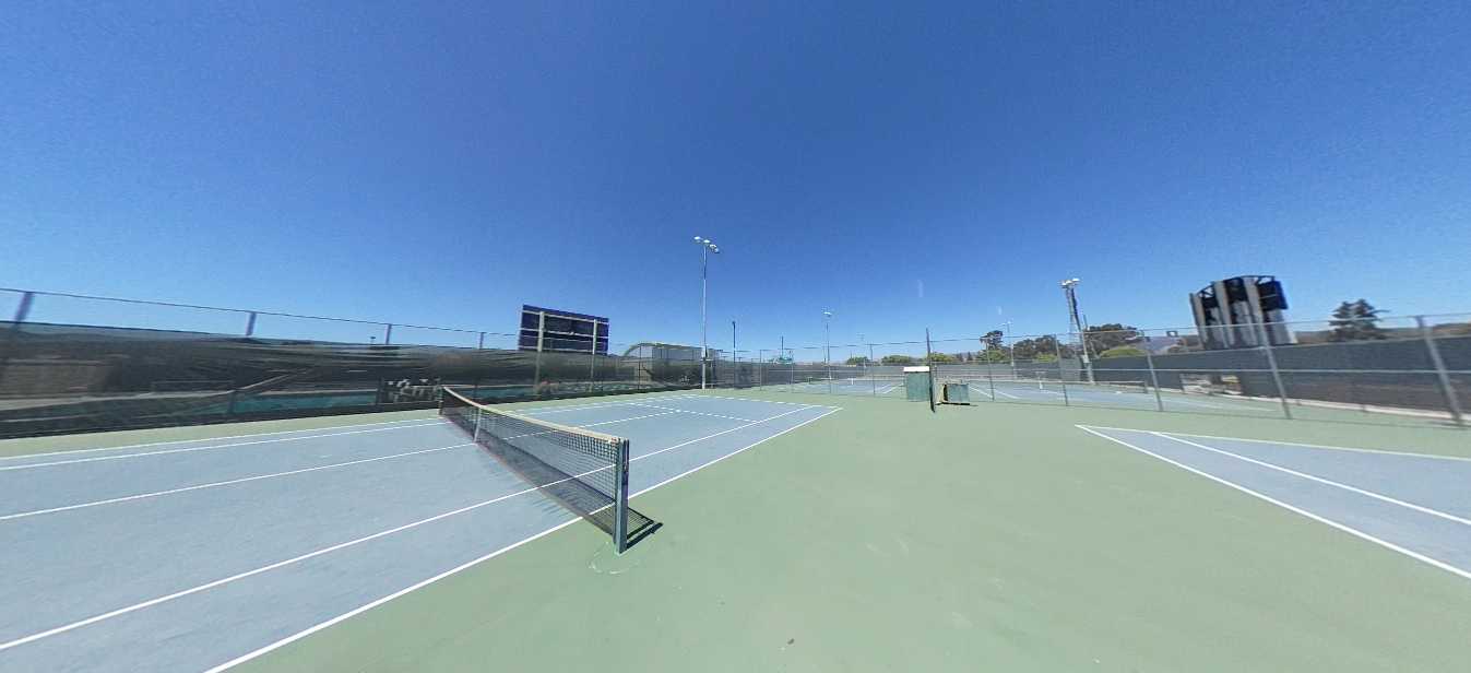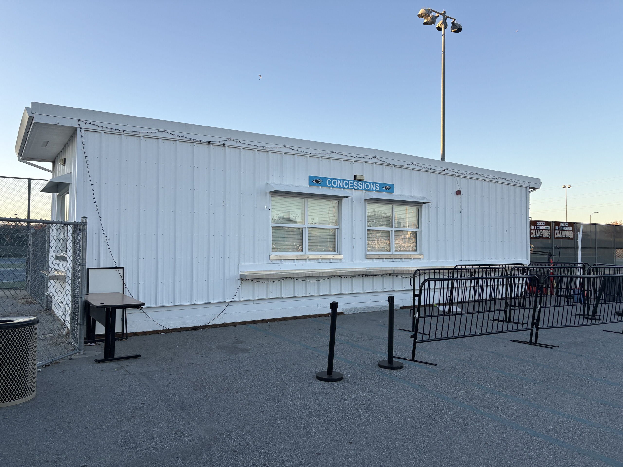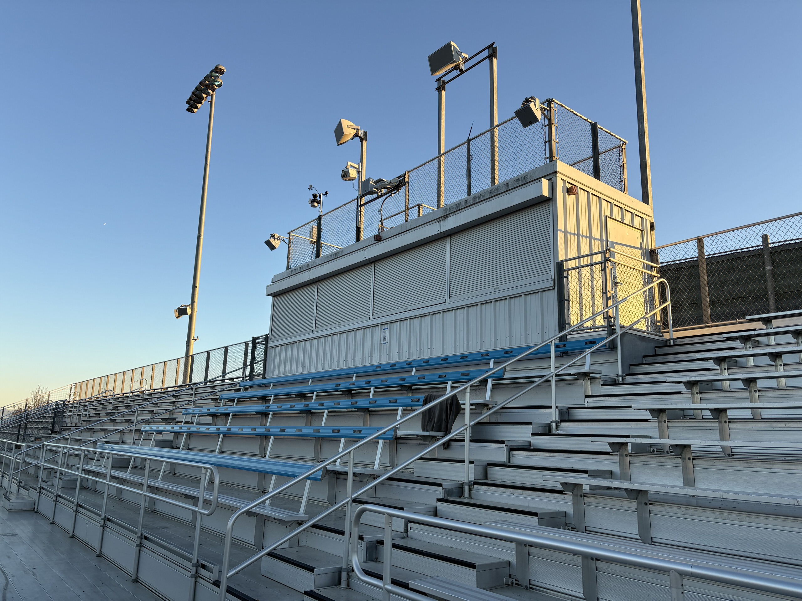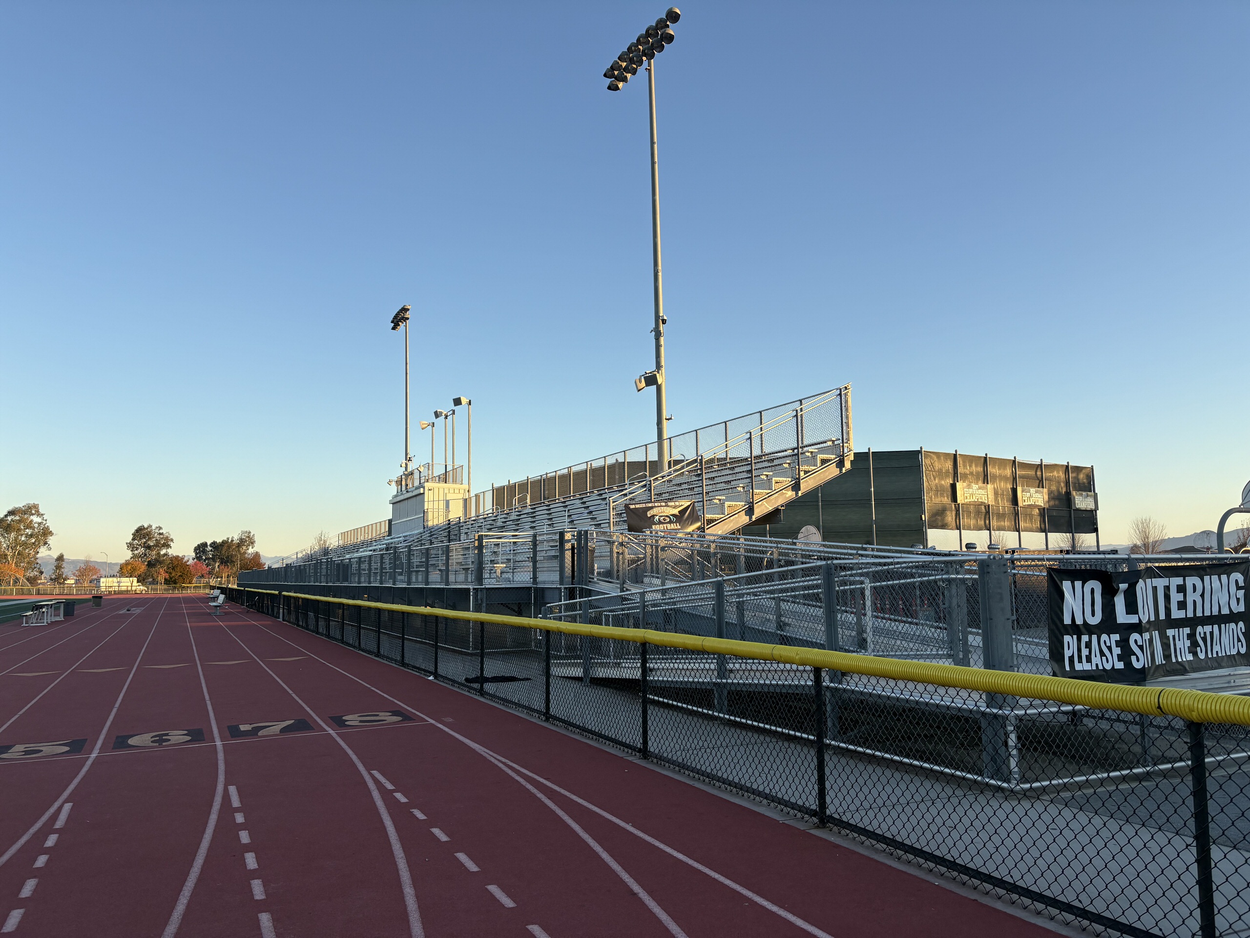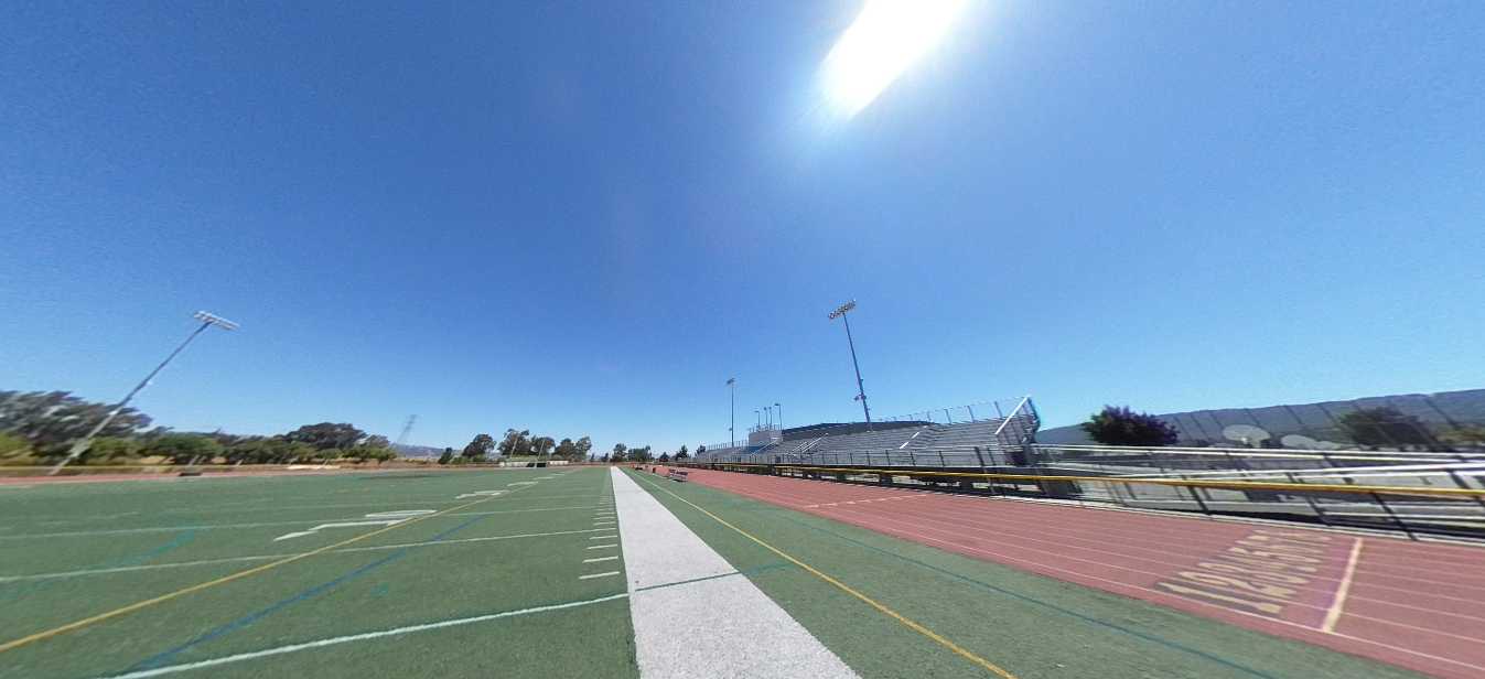 The football turf and track, now approximately 10 years old, are approaching the end of their functional lifespan. Grass fields, including the quad lawn, are uneven and poorly irrigated, resulting in patchy surfaces. Tennis courts exhibit cracking and surface failure, while basketball courts remain in fair condition. Field lighting is inadequate for evening events, and the perimeter fence along Day Road East is undersized, creating security challenges. Concession and restroom facilities consist of aging portable structures in deteriorated condition. The open field is in poor condition. Shading at the aquatics center is insufficient.