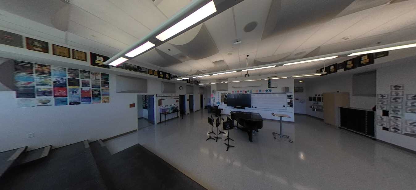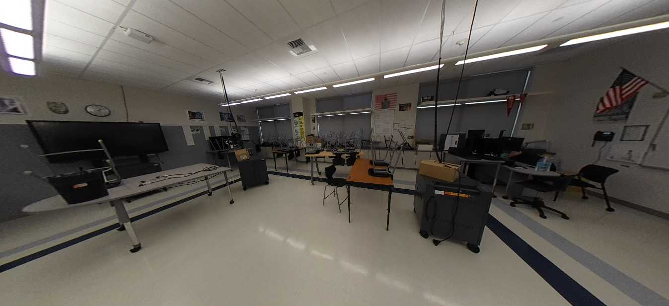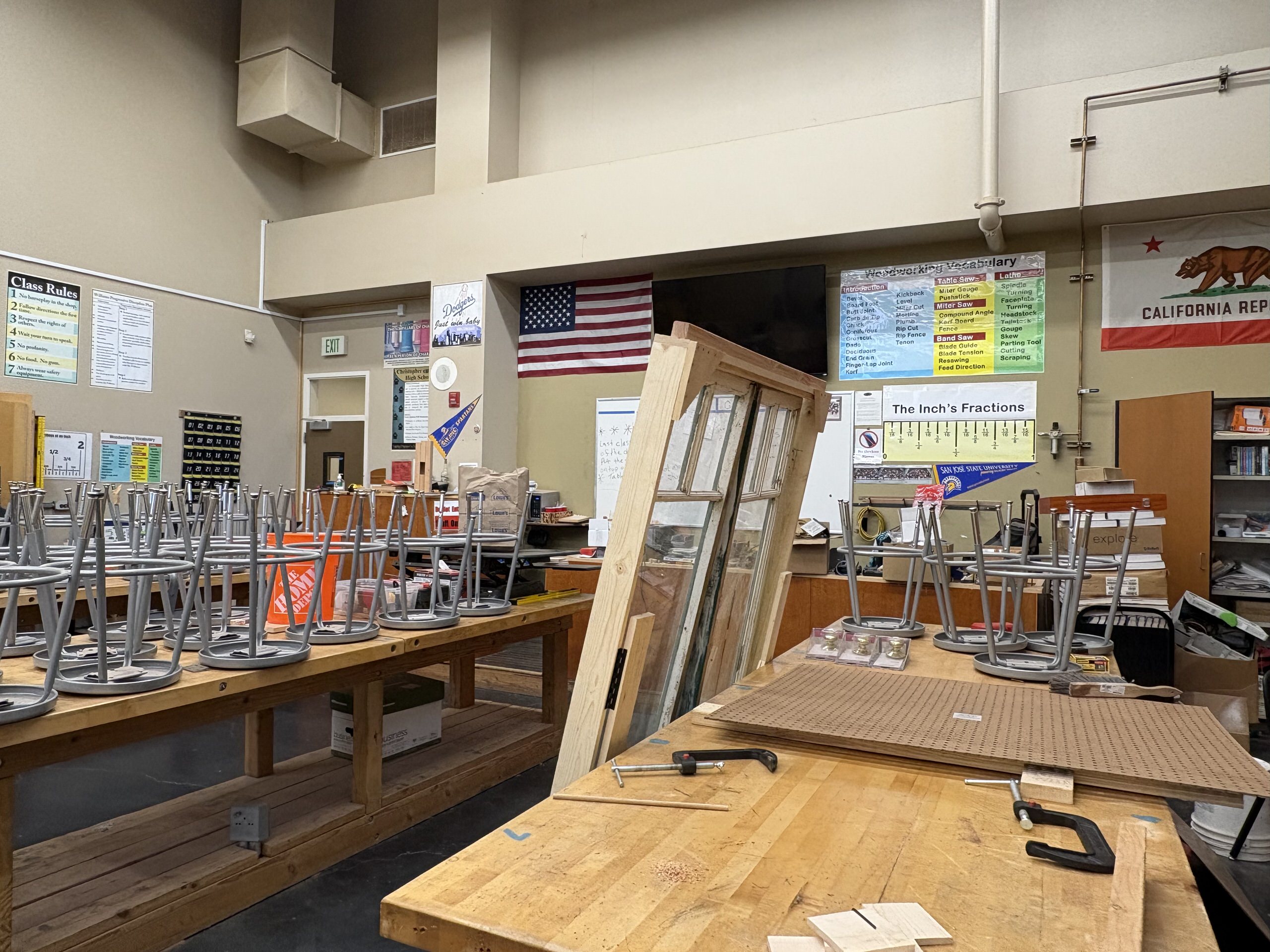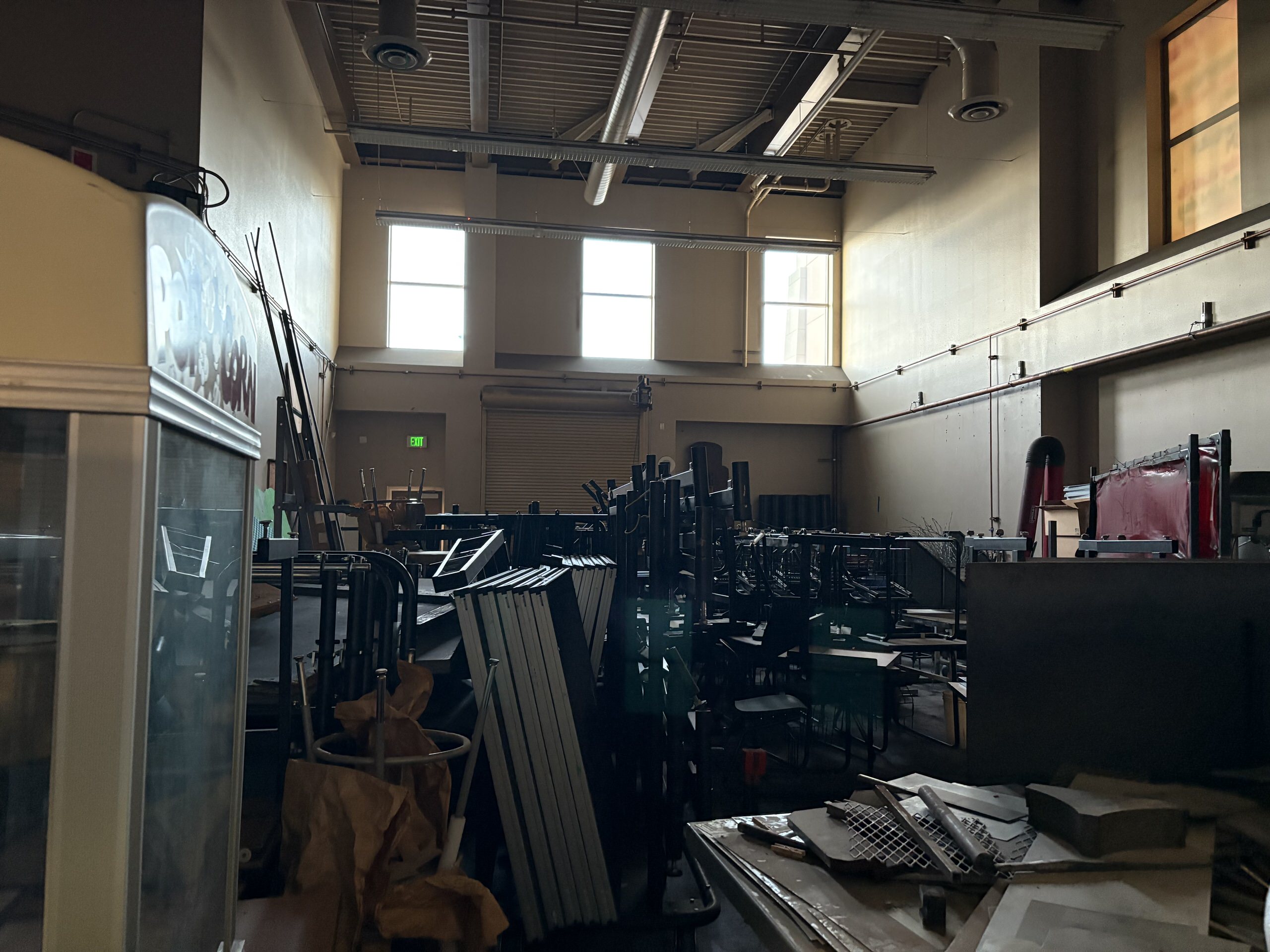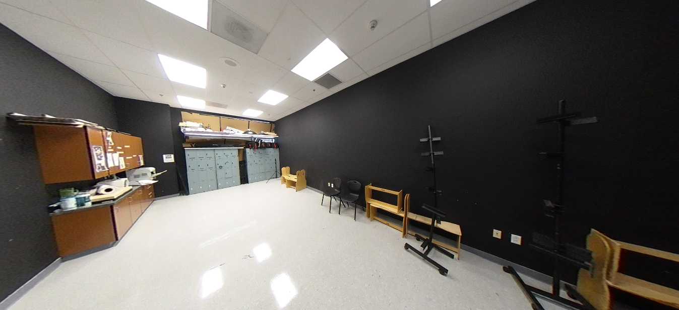 CTE and specialty classrooms follow the curved perimeter of the campus and include the metal and wood shops, life skills classroom, computer labs, arts classrooms, and music rooms. The welding shop has been closed due to insufficient electrical capacity and inadequate ventilation, as the space was originally designed for light metalwork rather than full welding operations. The wood shop remains in use but shares power with adjacent areas, creating electrical strain. Digital design and theater technology programs operate in undersized, inflexible rooms, and storage shortages persist across all CTE areas, forcing the use of classrooms and former workshop spaces for general storage.