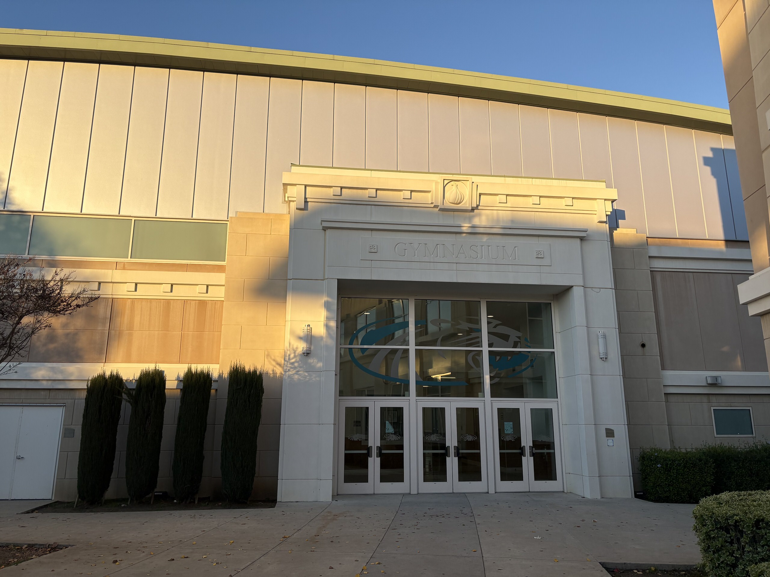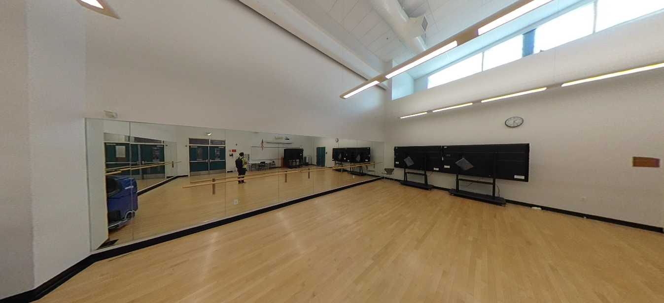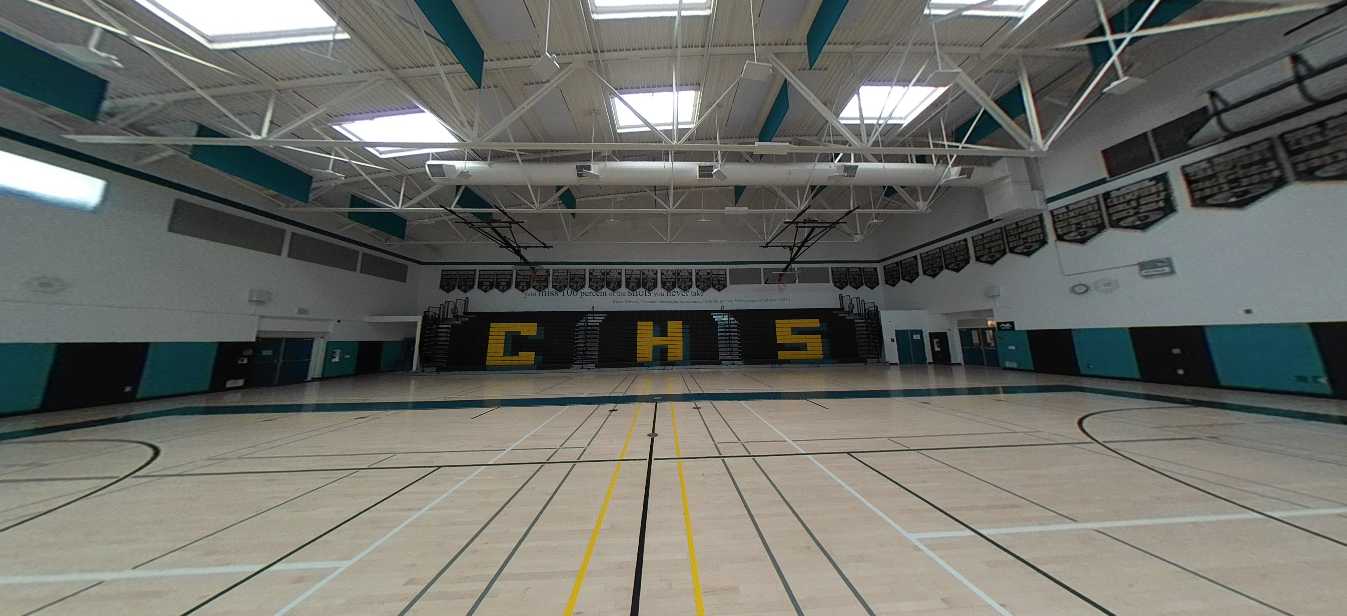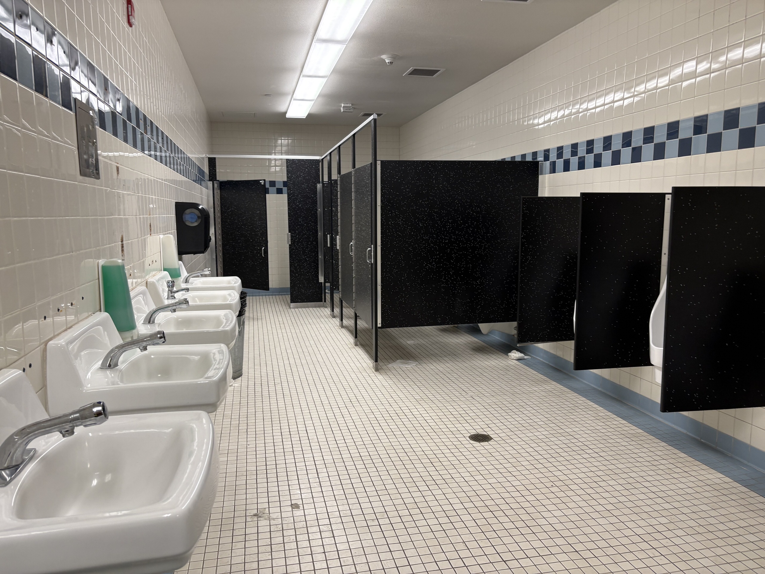 The gymnasium complex fronts the parking lot between Cougar Court and Day Road and houses a main gym, practice gym, wrestling gym, weight room, locker rooms, athletic classrooms, storage, and support spaces. The main gym includes full-size courts, protective wall padding, and acoustic fins at the high ceiling. However, interior finishes are outdated, equipment is nearing end-of-life, and locker rooms show significant wear, including damaged walls, dented lockers, and aging fixtures. While heavily used and central to campus life, the athletic and gym facilities require modernization and long-term maintenance investment.