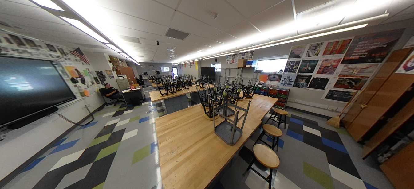 Classrooms remain functional and comfortable; however, finishes including paint, flooring, and ceiling tiles show visible wear after more than a decade of continuous use. Some spaces exhibit localized damage or staining. Technology infrastructure, including AV systems, power drops, and cord reels, is outdated, with plans underway to transition to wireless technology. Furniture, while serviceable, lacks flexibility needed for contemporary instructional models. Several wings have insufficient storage, leading to cluttered learning environments. Overall, classroom spaces would benefit from modernization focused on finishes, technology upgrades, storage solutions, and flexible furnishings.