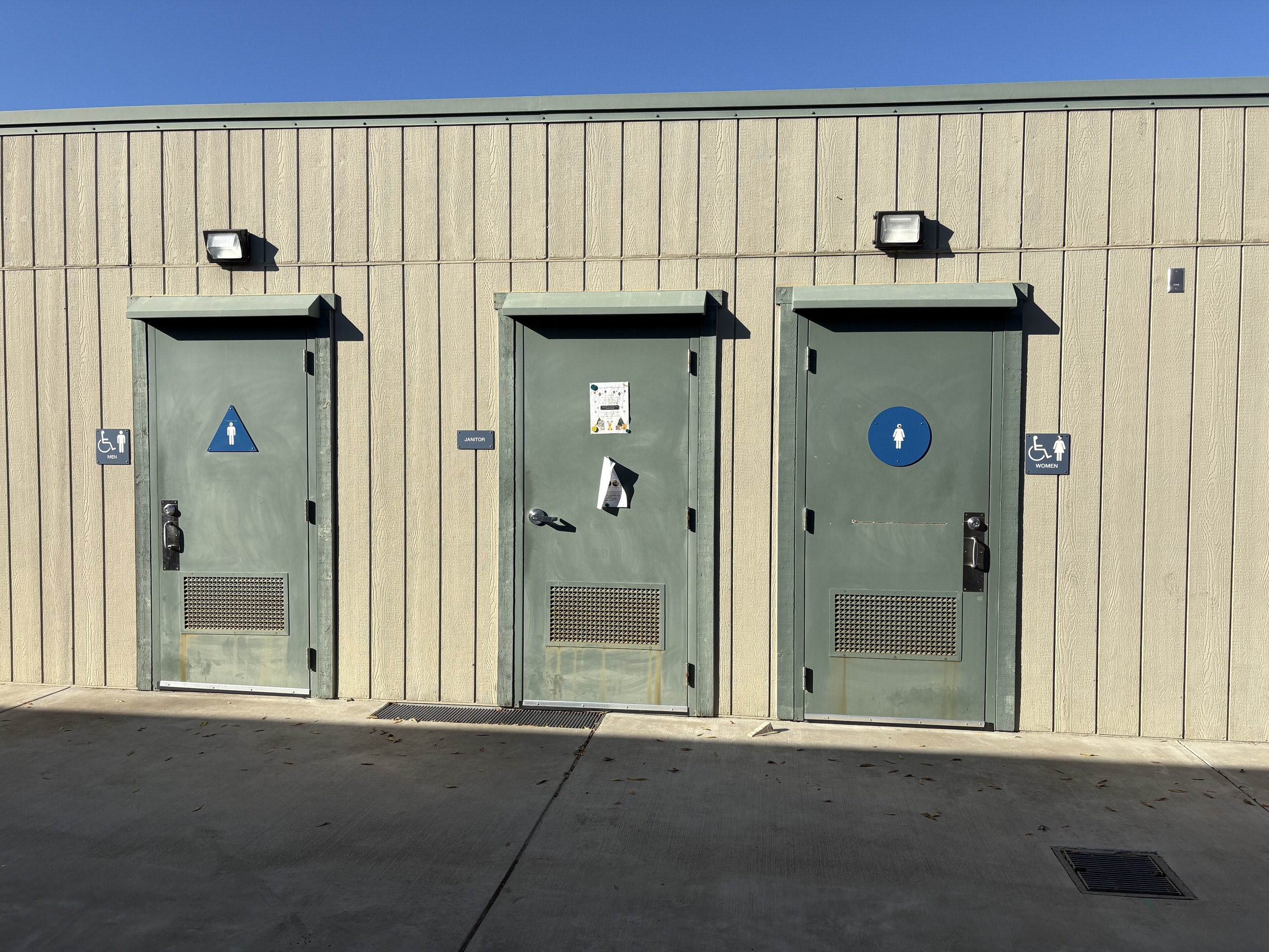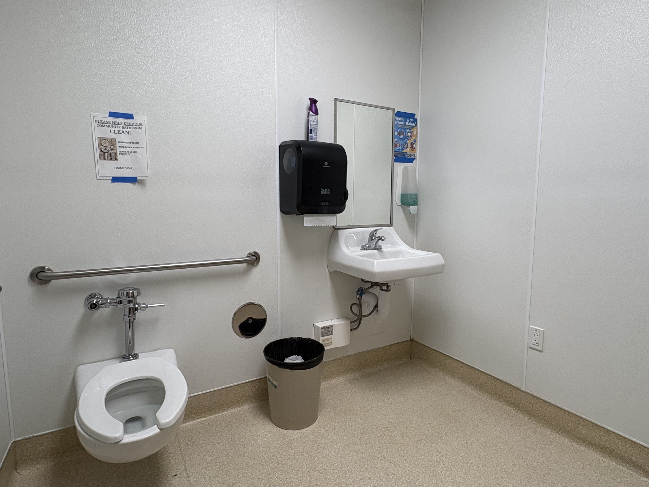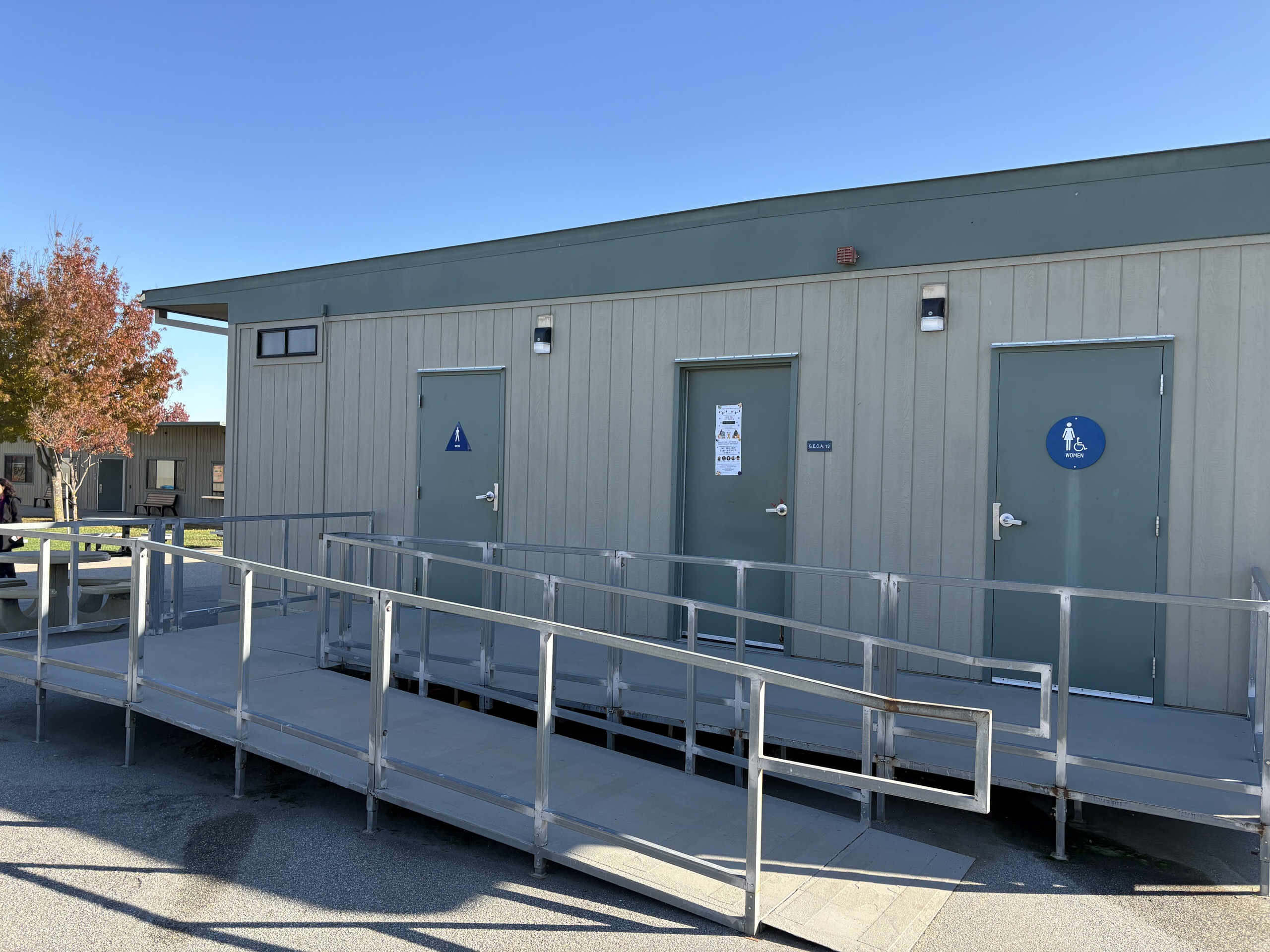 The administration portable includes an all-gender restroom with an accessible stall, though minor compliance issues have been identified and should be addressed as part of future improvements.
