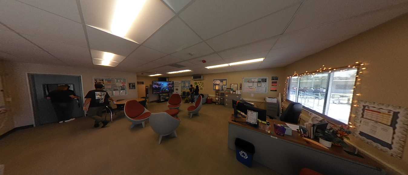 The main entrance is difficult to identify from the parking lot due to limited signage and unclear wayfinding. While the building is in adequate condition, additional space and improved organization are needed to fully support administrative and student services.