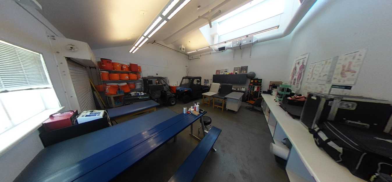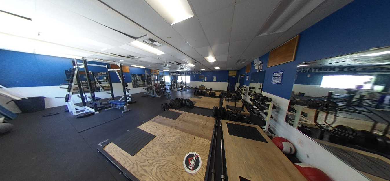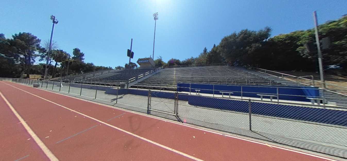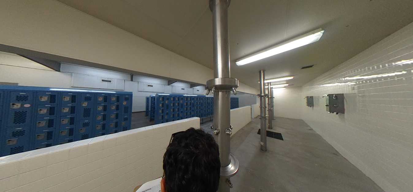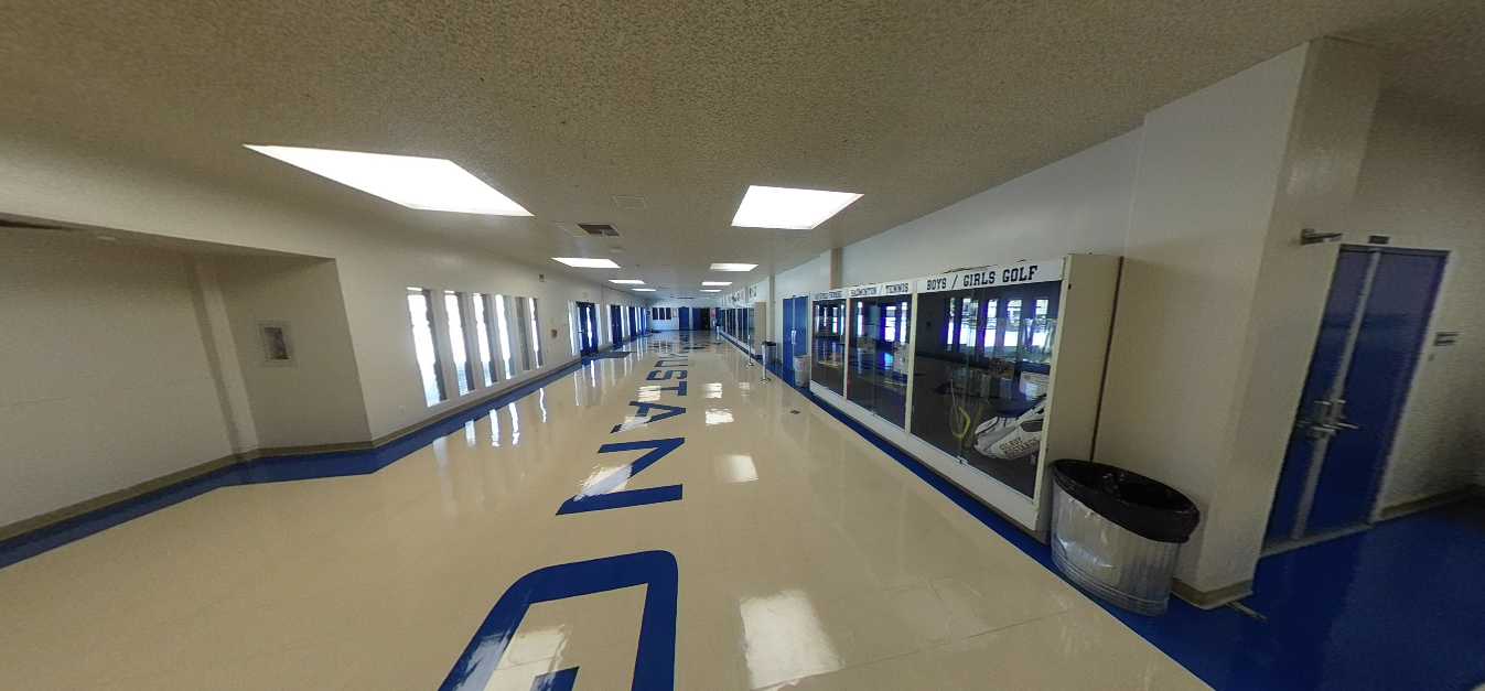 The gymnasium lacks air conditioning, and locker rooms are dated and inadequate. The baseball and softball fields exhibit uneven turf, irrigation deficiencies, and absence of permanent restrooms and spectator seating. The football stadium features outdated and non-accessible bleachers, a damaged track surface, and failing scoreboard and lighting systems. The weight room occupies a deteriorated portable building with compromised finishes. The recently renovated pool is supported by metal bleachers but lacks sufficient shade structures. The tennis courts are located at the campus perimeter and have limited access to water and restroom facilities.