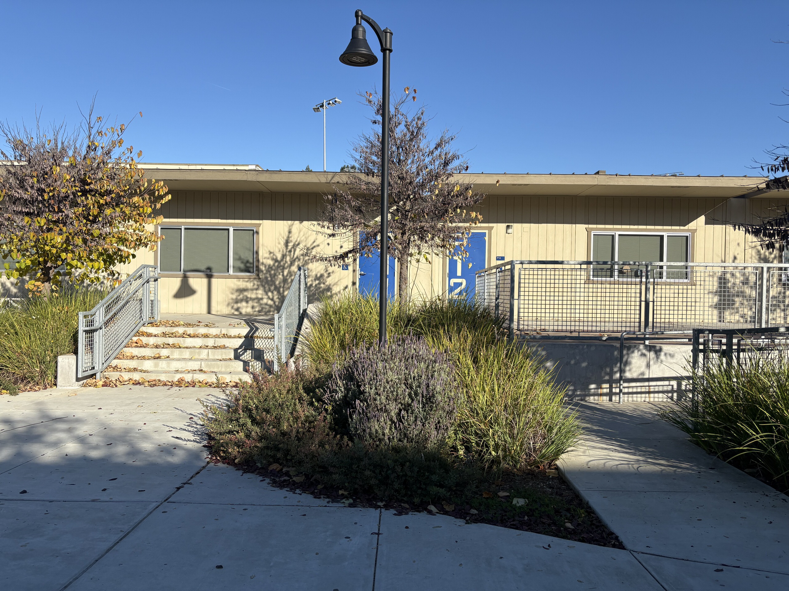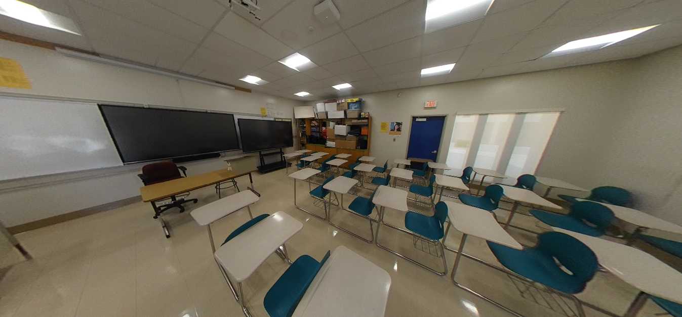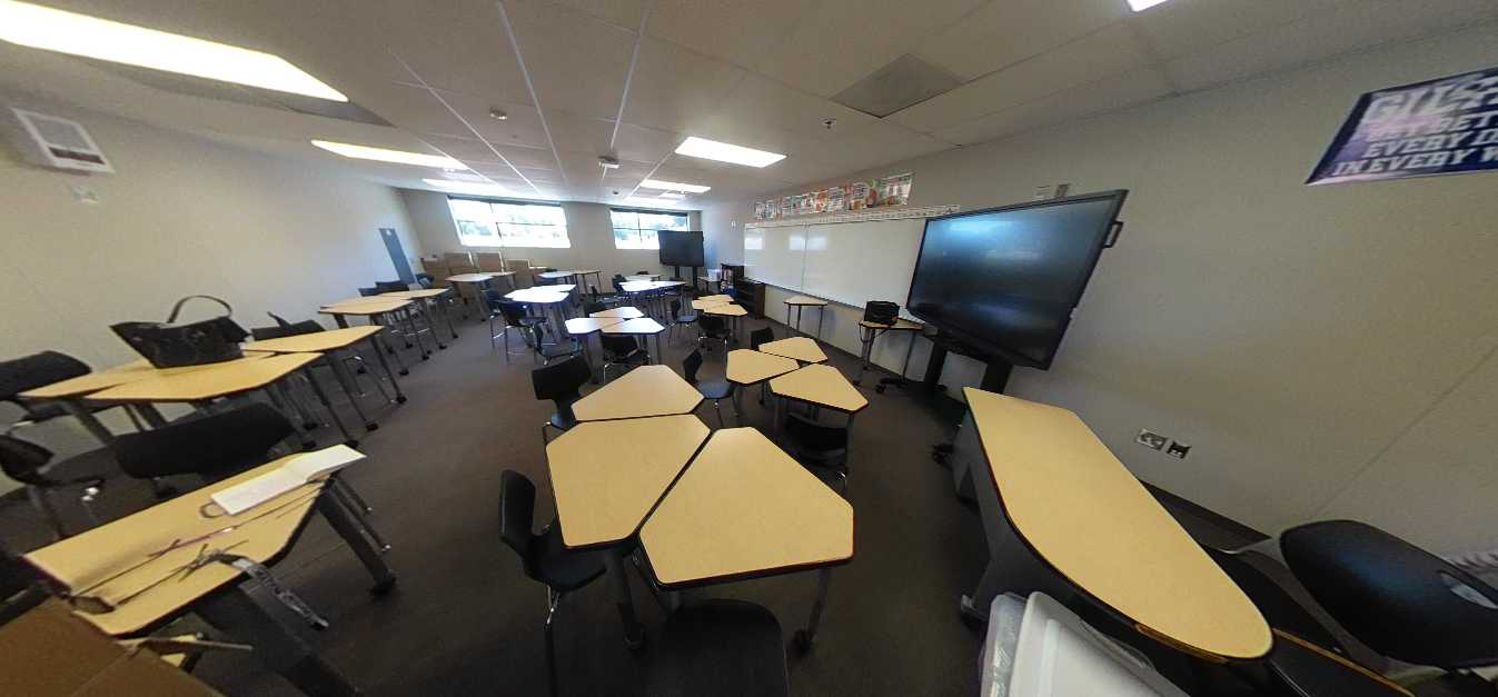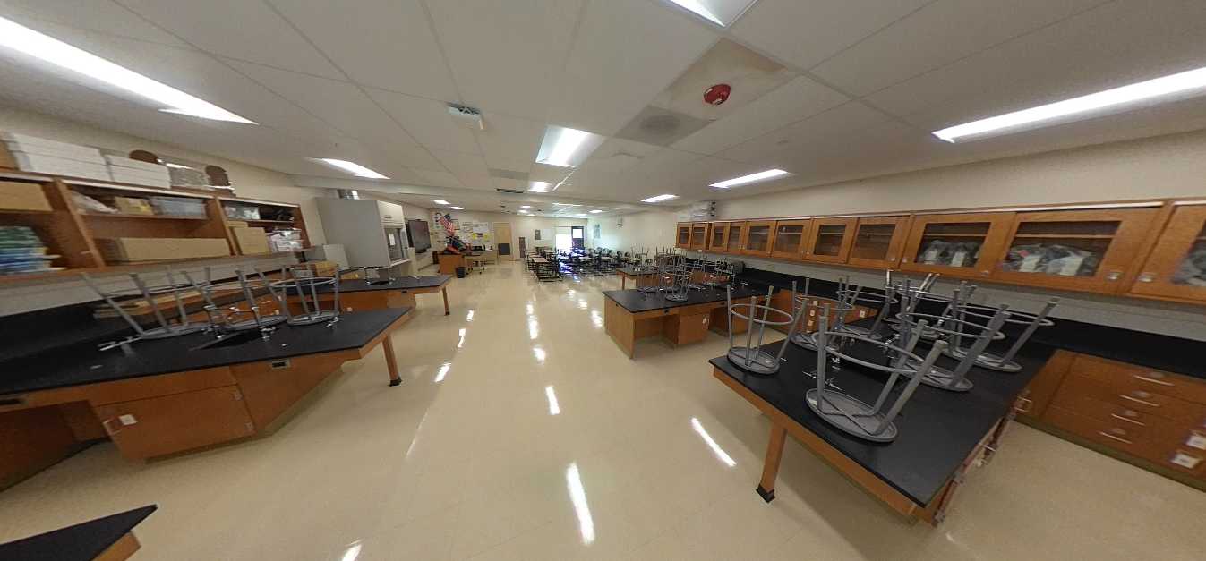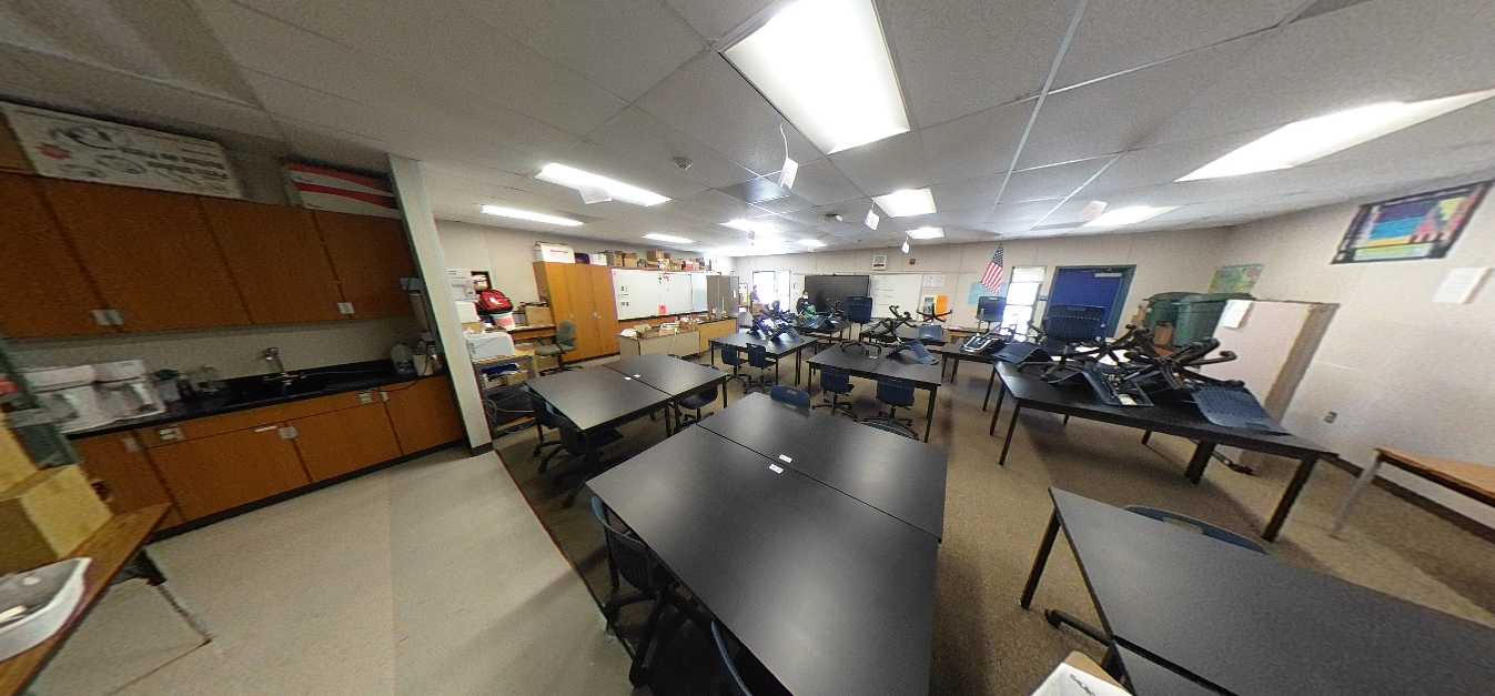 Additional classrooms are housed in an L-shaped portable complex near the athletic fields surrounding a well-maintained courtyard. These units are newer and in good interior condition. Science classrooms are generally in fair condition, featuring epoxy work surfaces, metal seating, adequate storage, and integrated sinks. However, interior finishes vary widely, ranging from fair to poor. Overall, instructional spaces remain functional but require modernization, particularly within the single-story buildings.