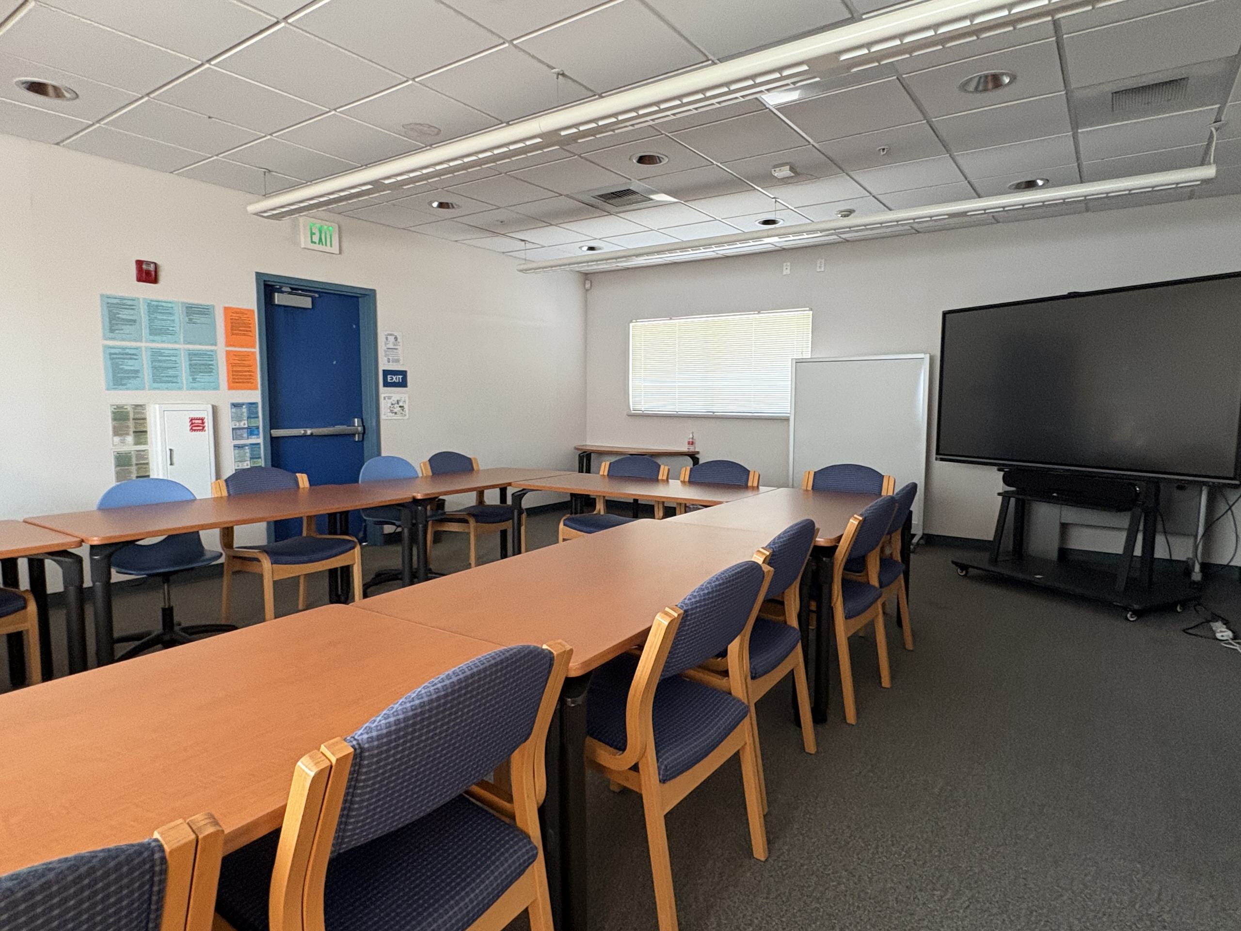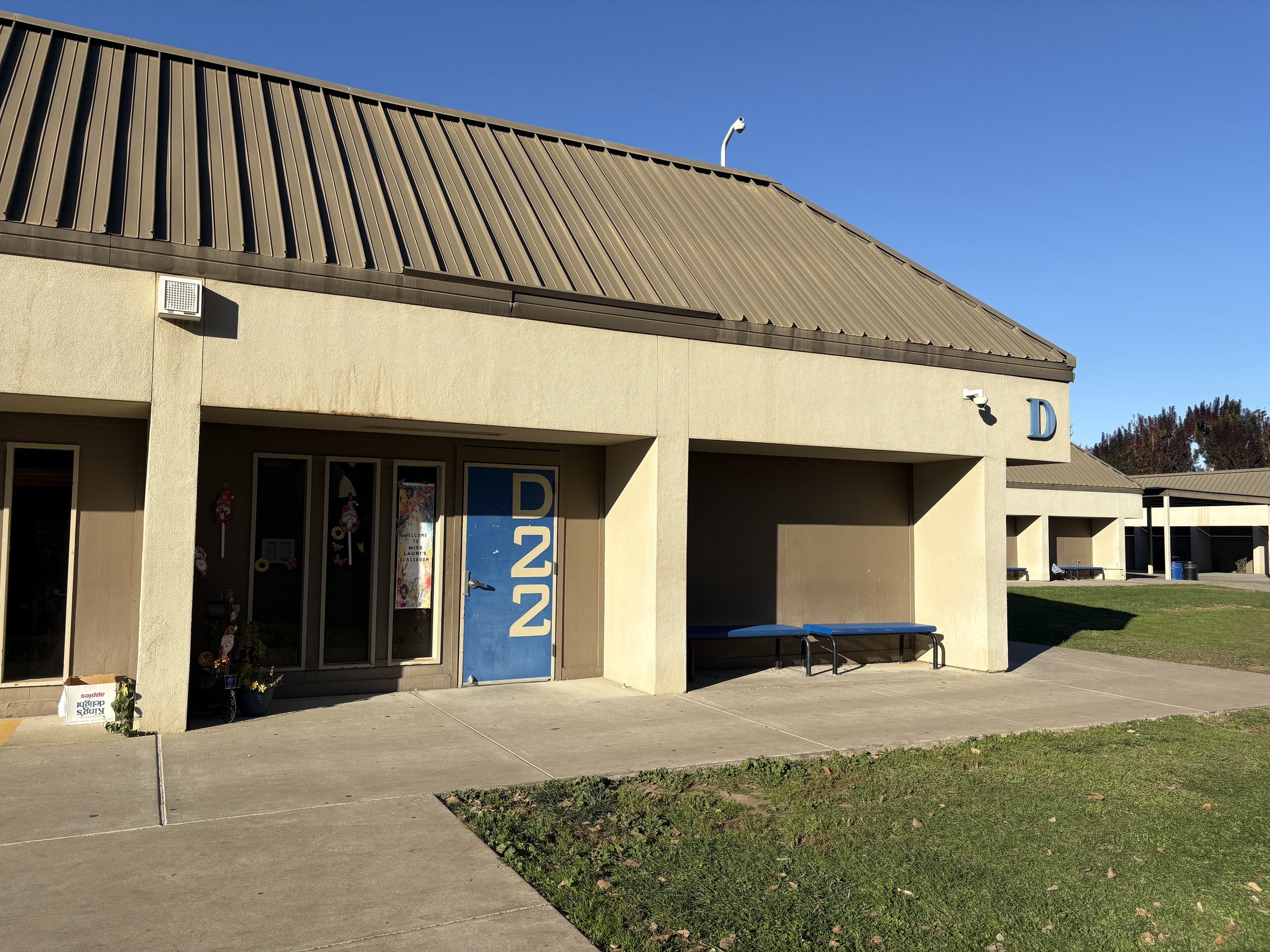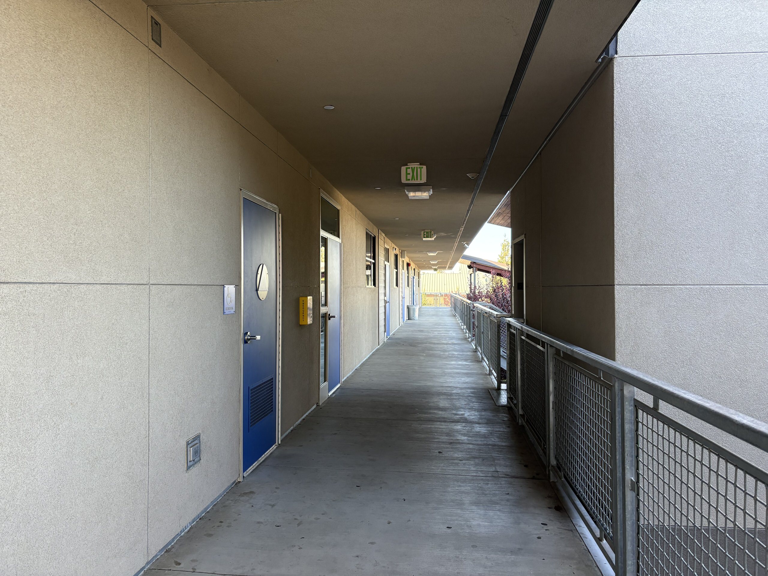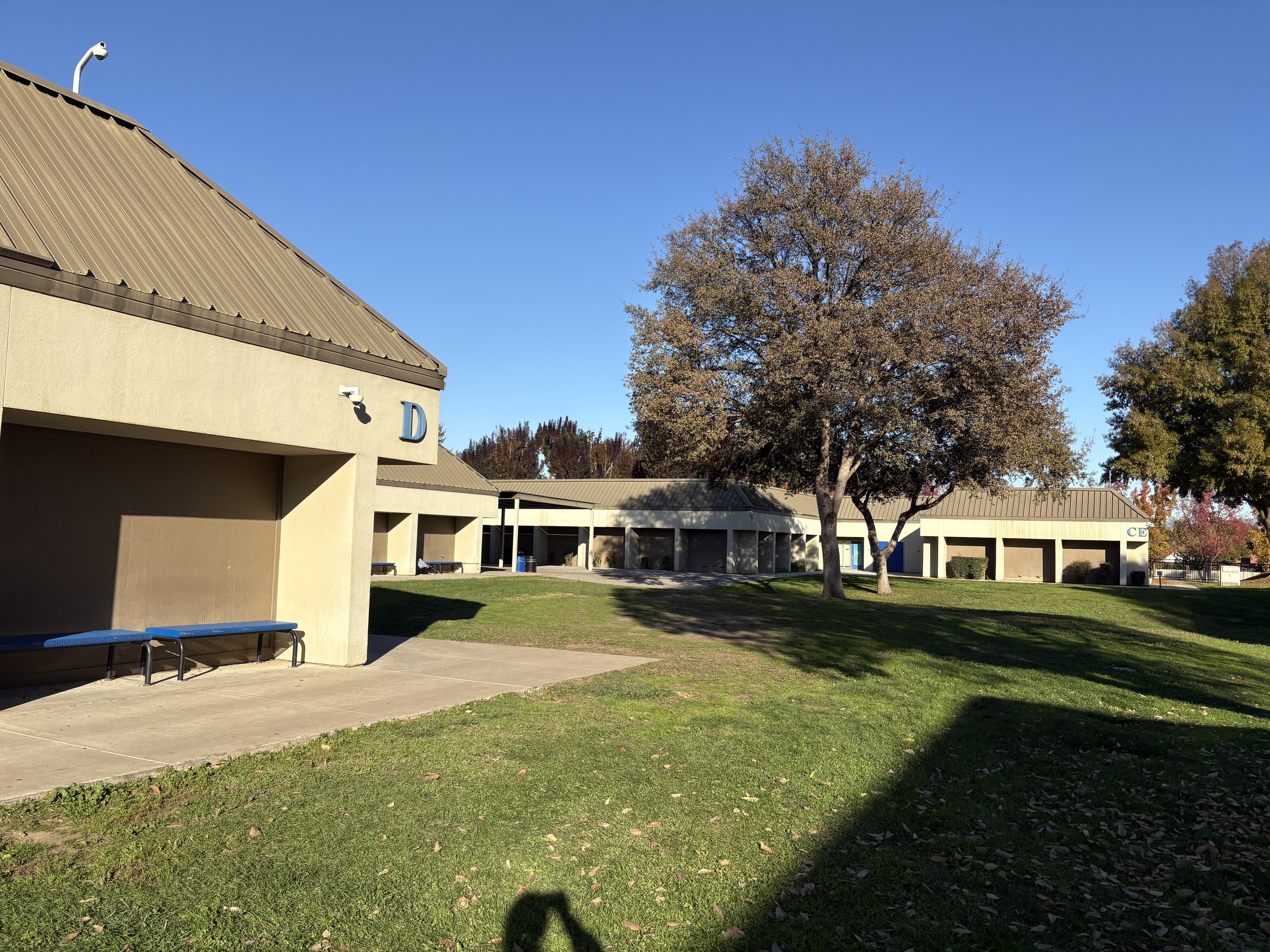 Additional classrooms are housed in an L-shaped portable complex near the athletic fields surrounding a well-maintained courtyard. These units are newer and in good interior condition. Science classrooms are generally in fair condition, featuring epoxy work surfaces, metal seating, adequate storage, and integrated sinks. However, interior finishes vary widely, ranging from fair to poor. Overall, instructional spaces remain functional but require modernization, particularly within the single-story buildings.
