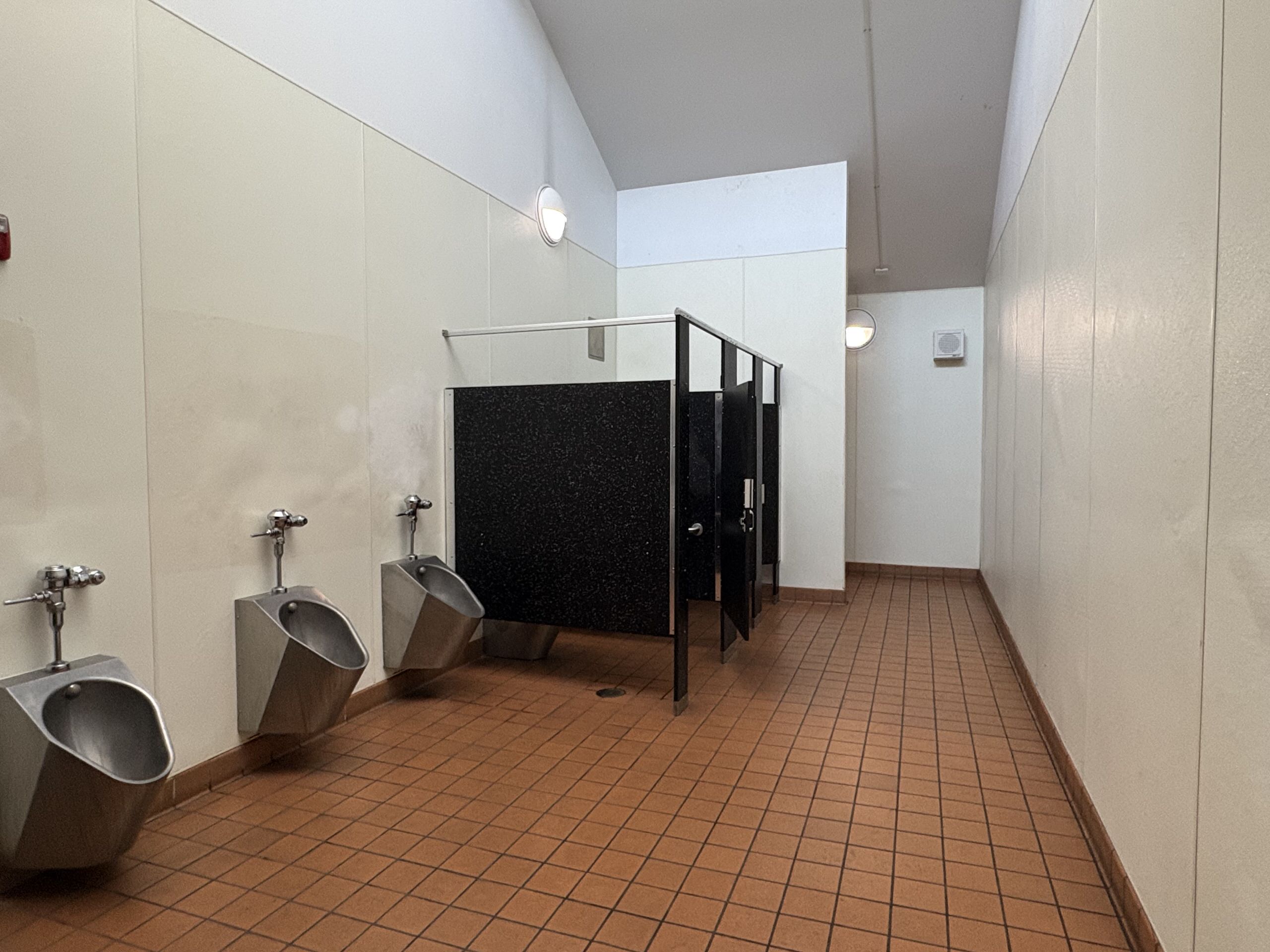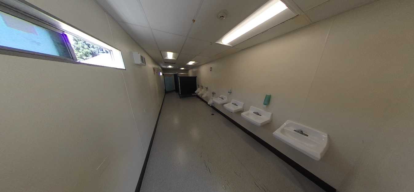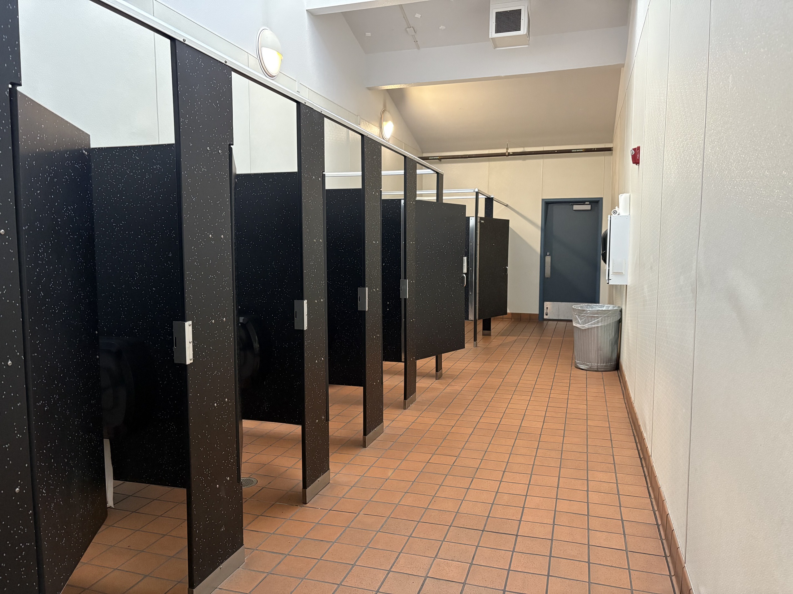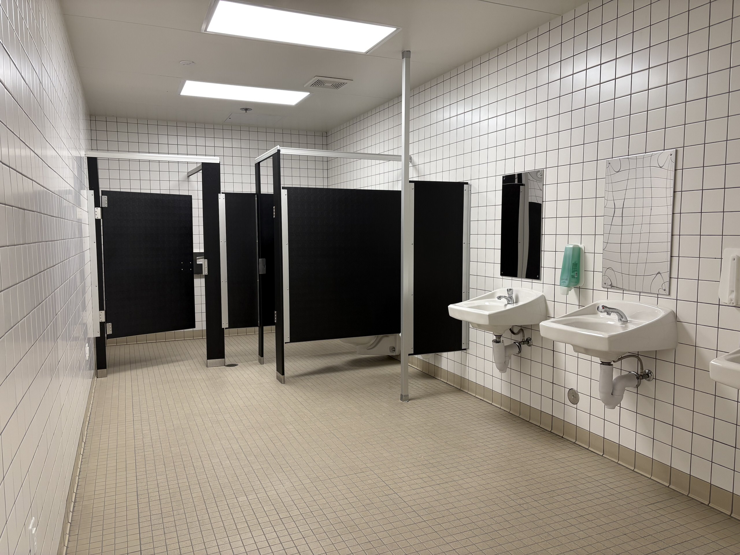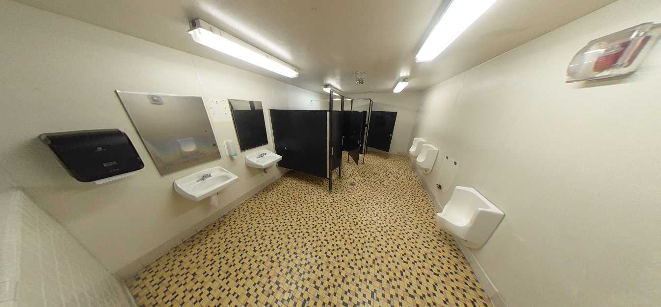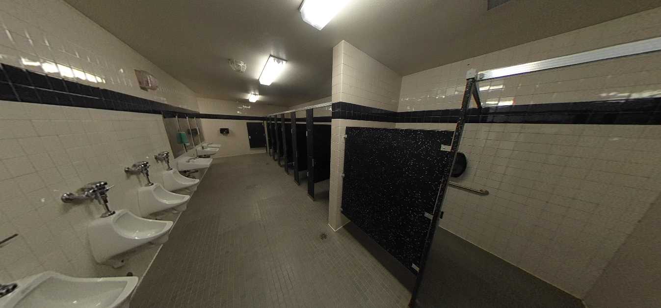 Restrooms throughout campus range from poor to fair condition. Most facilities include original 4”x4” ceramic tile, phenolic partitions, and worn flooring surfaces. While fixtures remain operational, many exhibit staining, chipped finishes, and outdated plumbing. Although basic accessibility requirements are generally met, several accessories and fixtures do not fully comply with current ADA standards. Ventilation and lighting vary significantly, contributing to odor and ongoing maintenance challenges.