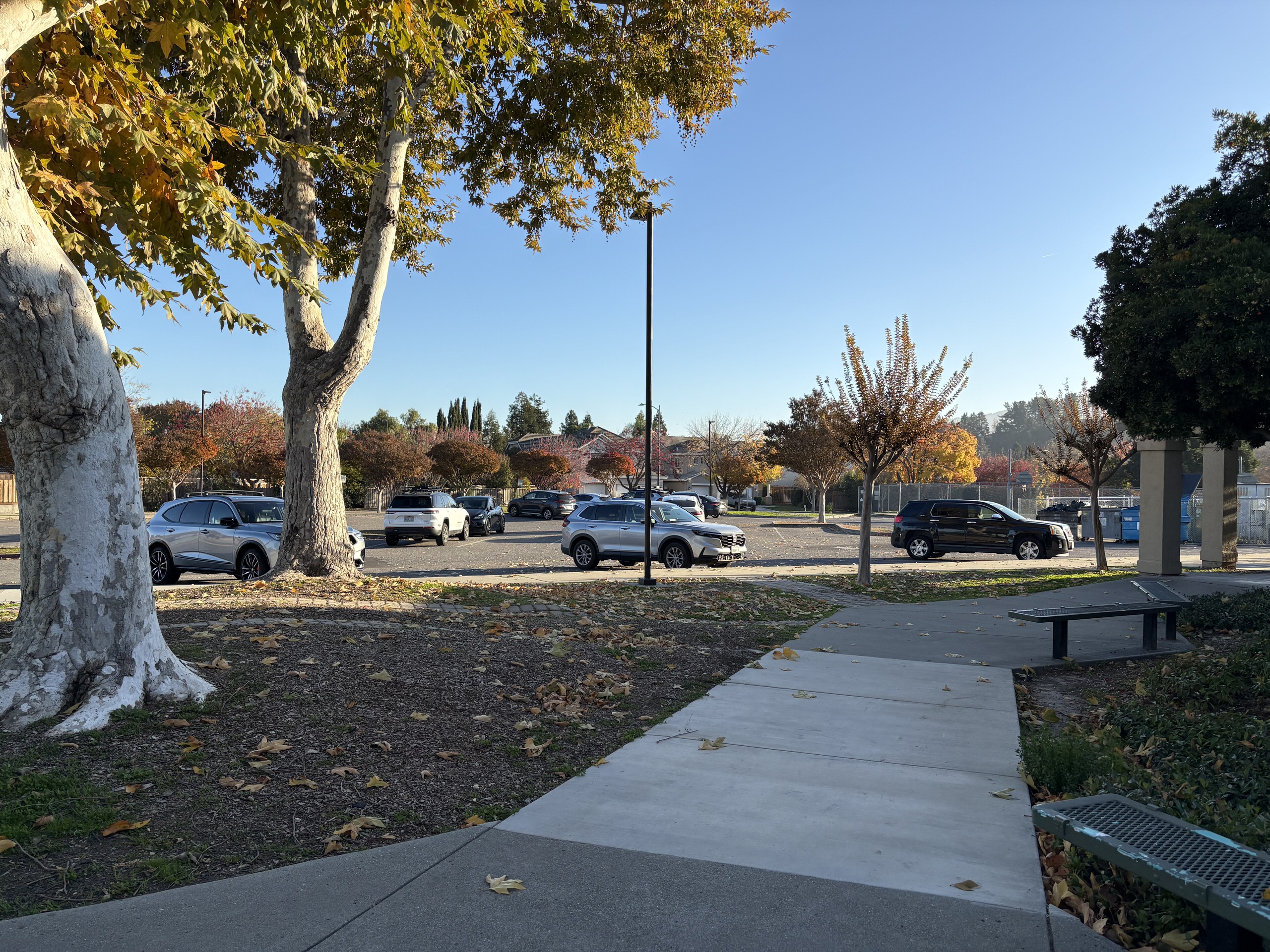 The primary parking lot is located at the campus main entry, with a designated drop-off zone situated just north along Calle Del Rey. Overall parking capacity is inadequate for staff needs, leading to limited daily availability. Although vehicular circulation is simple and direct, its limited size results in significant congestion during morning drop-off and afternoon pick-up periods.